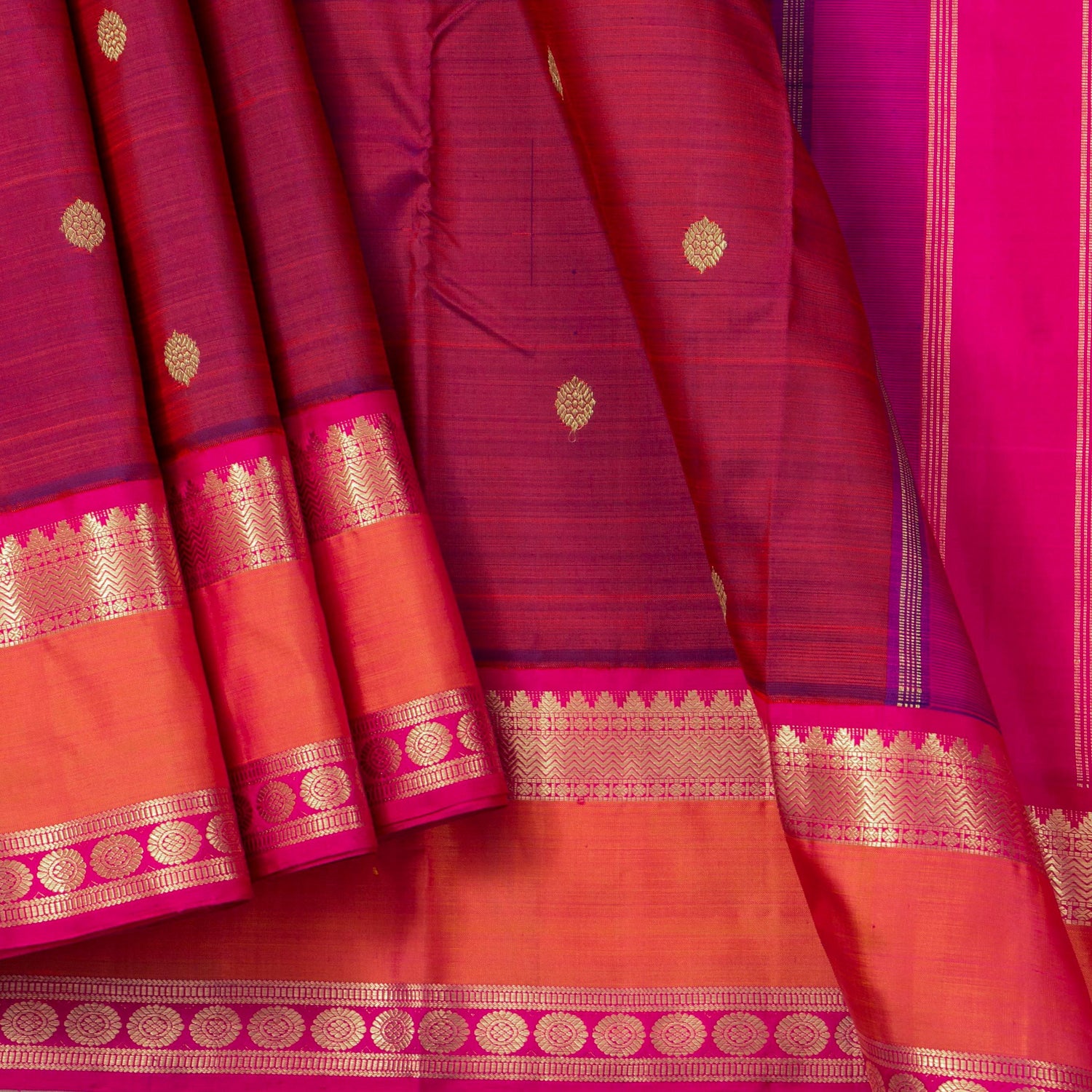 Magenta And Peach Kanchipuram Silk Saree For Festive Wear PV KNN 292