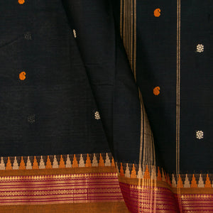 Black And Mustard Kanchi Cotton Saree For Festive Wear PV MM KC 587