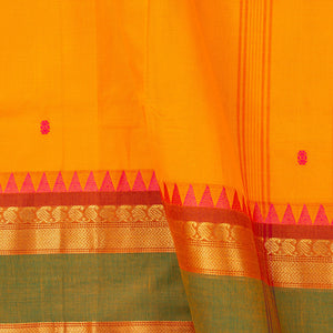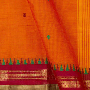 Orange And Green Kanchi Cotton Saree For Festive Wear PV MM KC 581