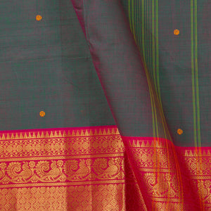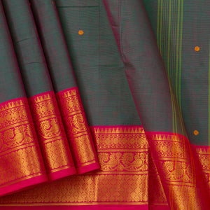 Grey And Green Kanchi Cotton Saree For Festive Wear PV MM KC 496