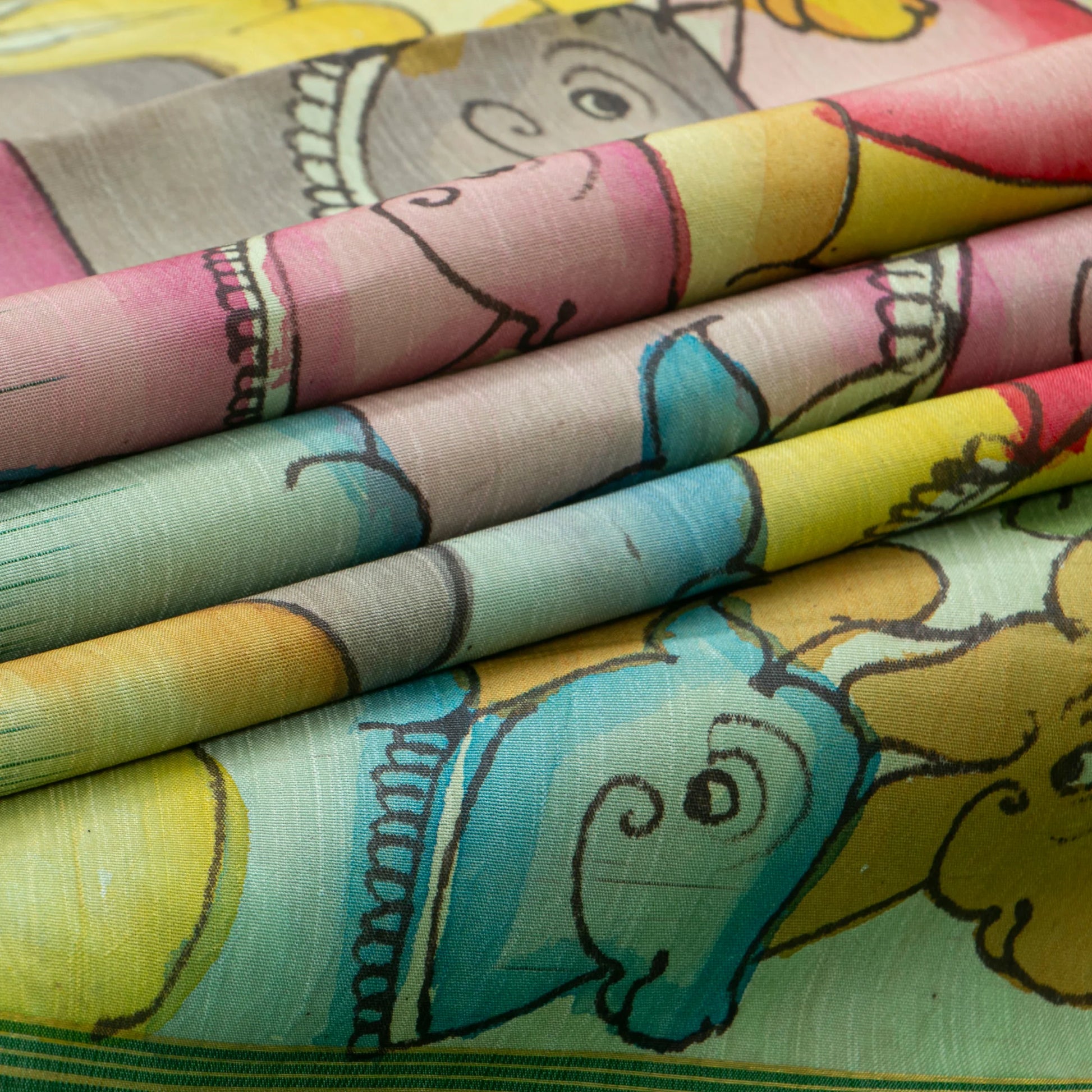 Vamana Avatar Themed Green Handpainted Kalamkari Kanchipuram Silk Saree ...