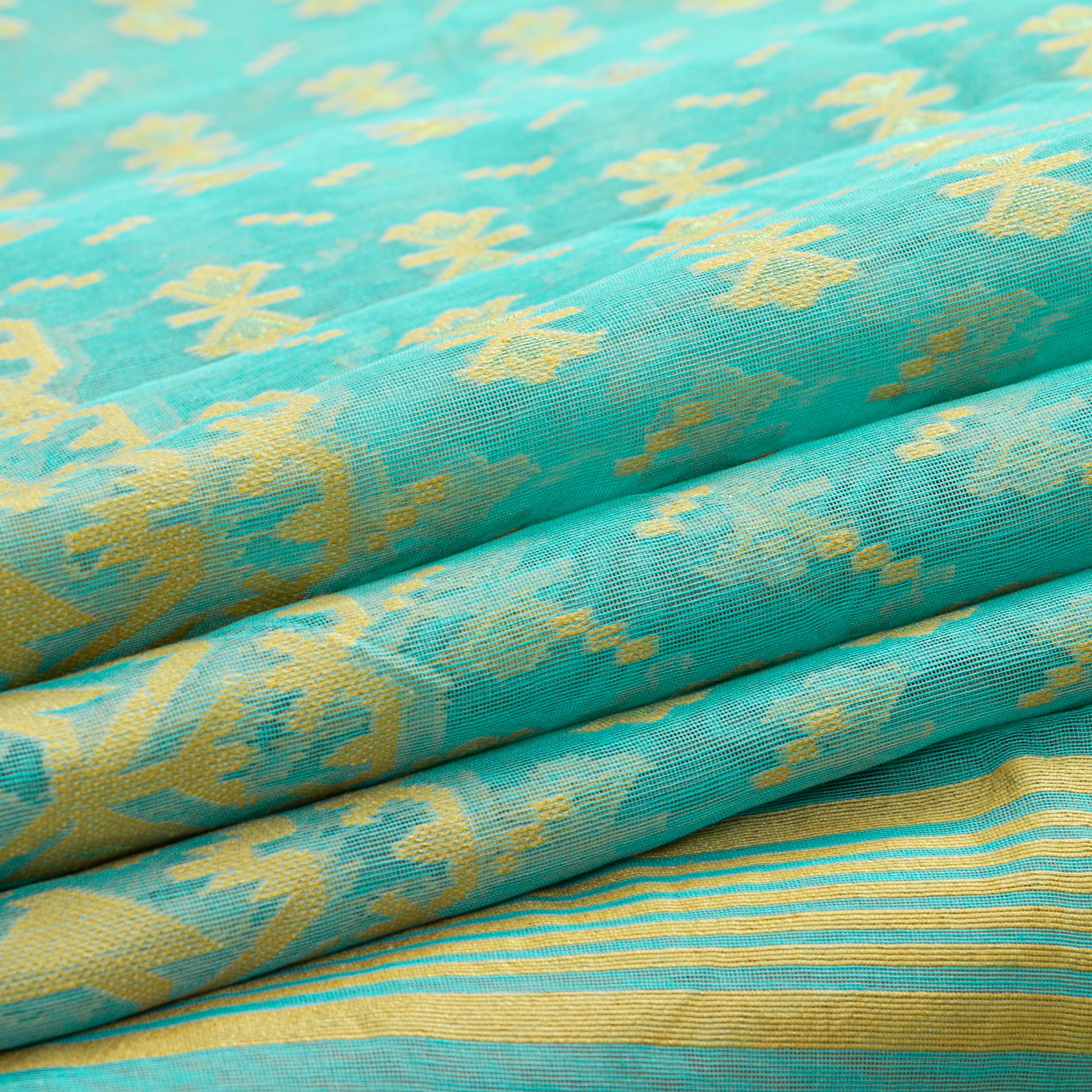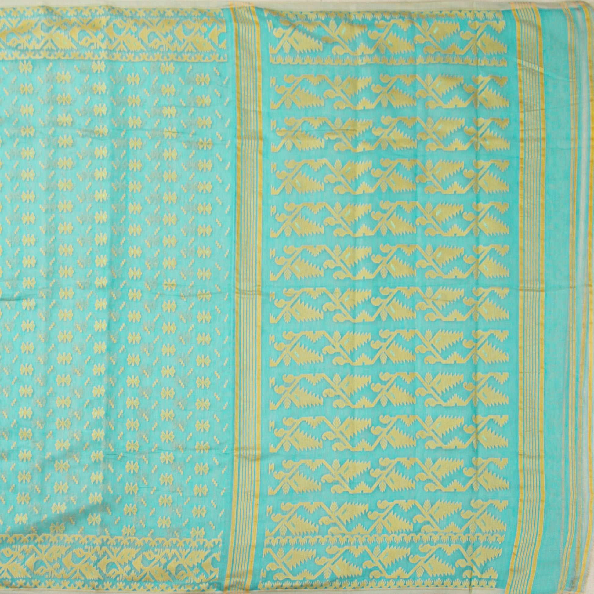 Aqua Blue Dhakai Jamdani Mulmul Silk Saree For Party Wear PV MJ 140