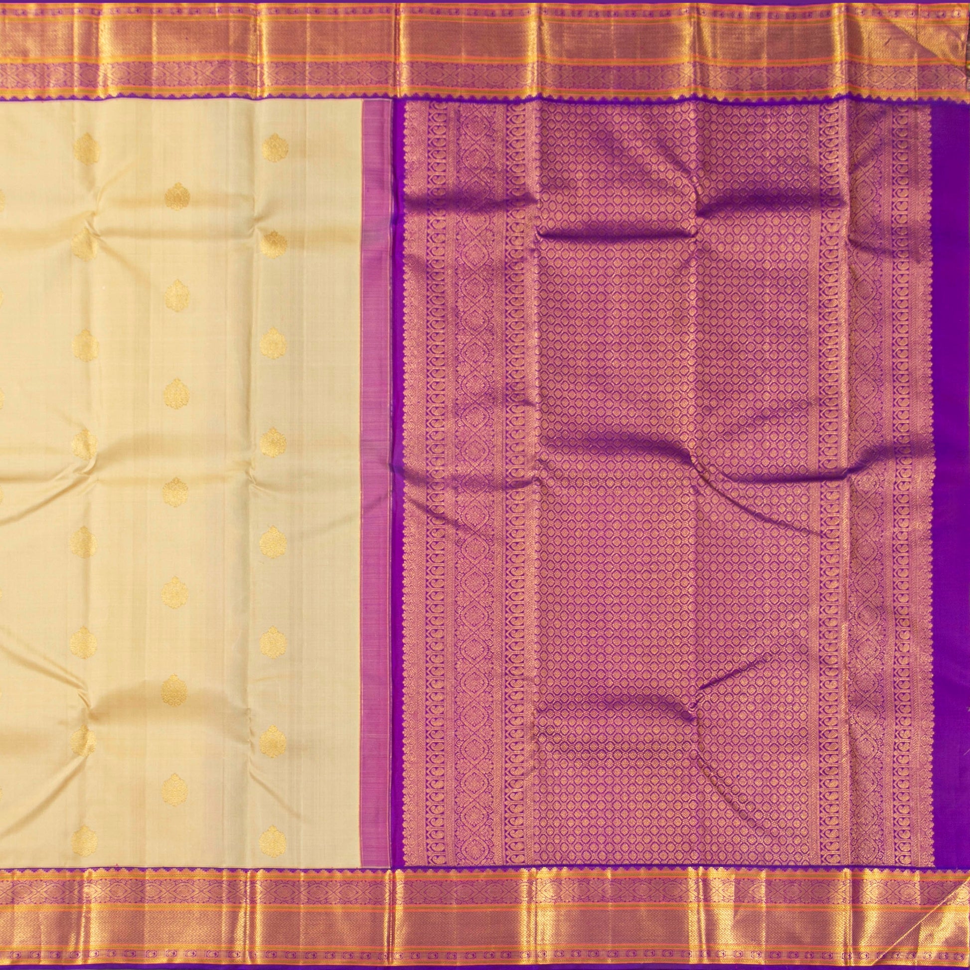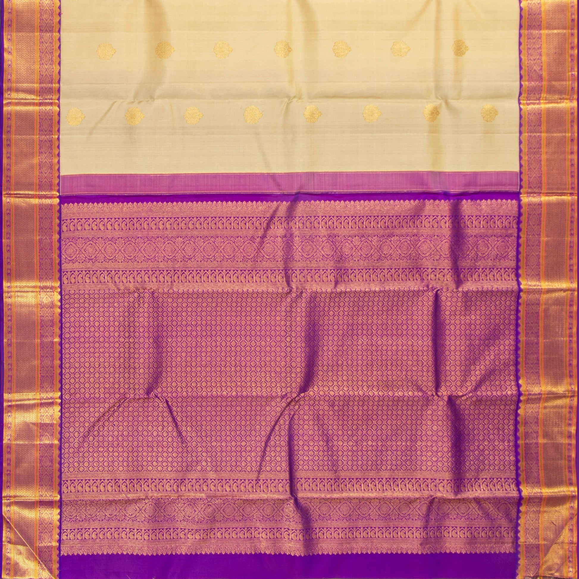 Beige And Purple Kanchipuram Silk Saree For Wedding Wear PV NYC 1924