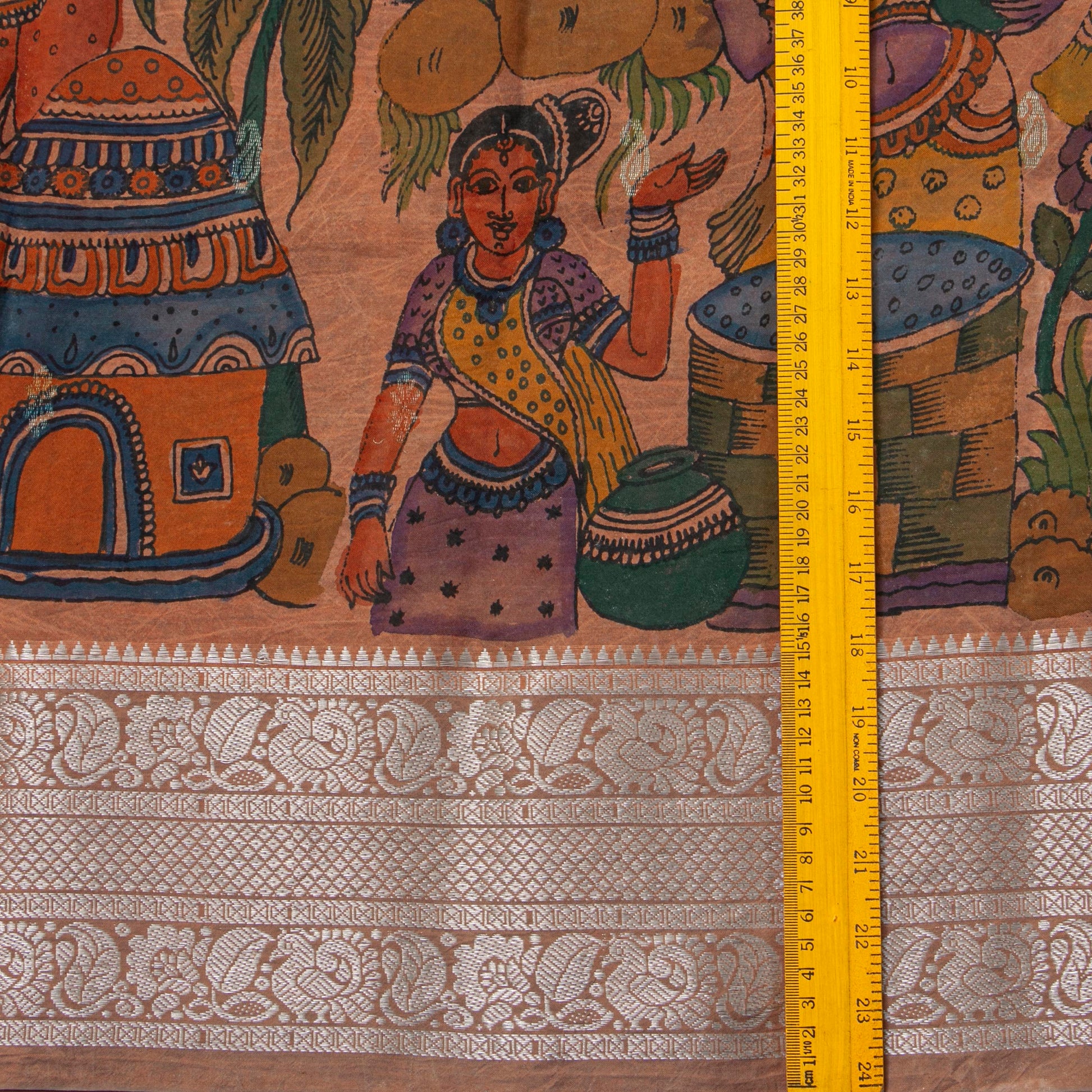 Beige Handpainted Kalamkari Tussar Silk Saree With Zari Border PTK VSR 133