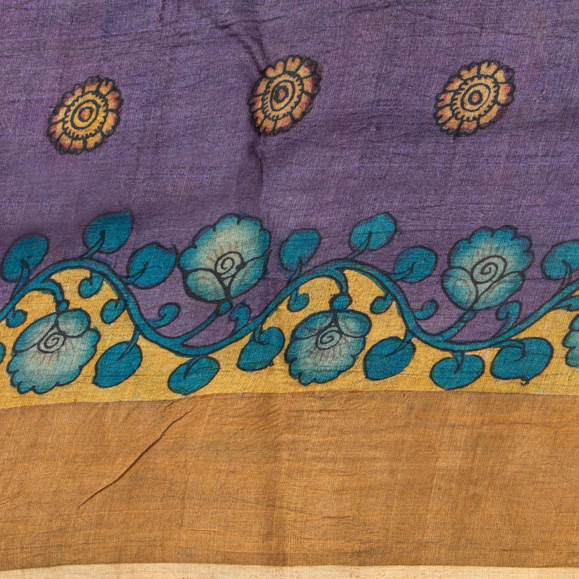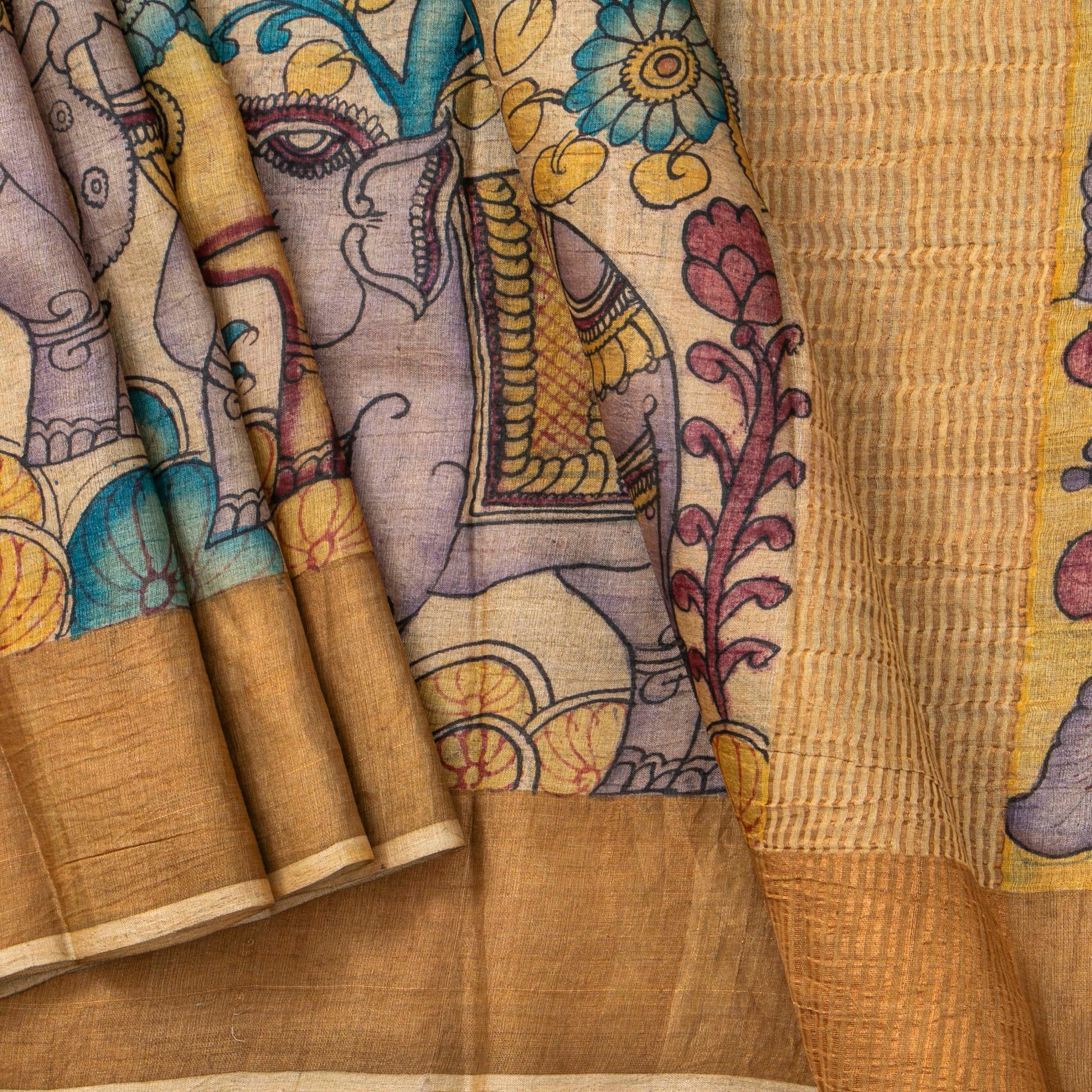Beige Handpainted Kalamkari Tussar Silk Saree With Zari Border PTK VSR 133