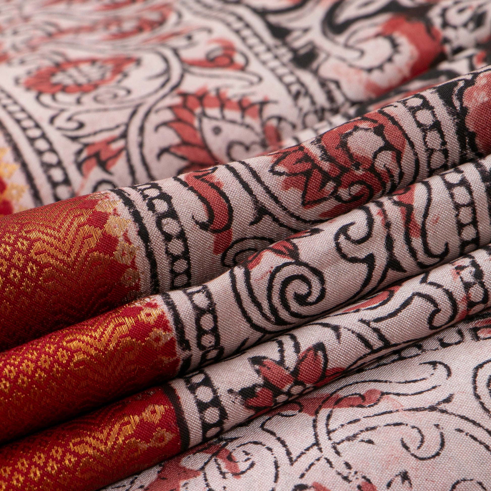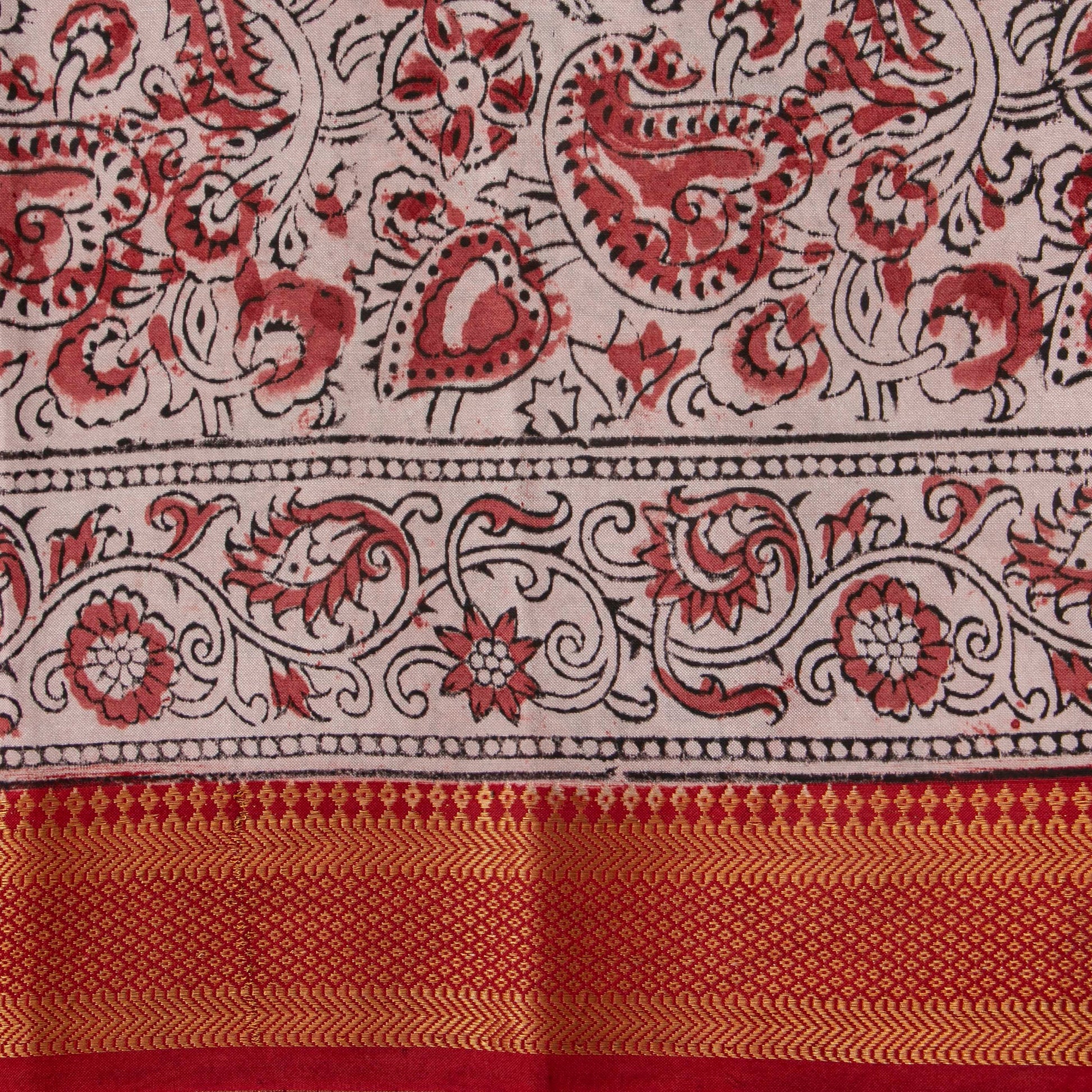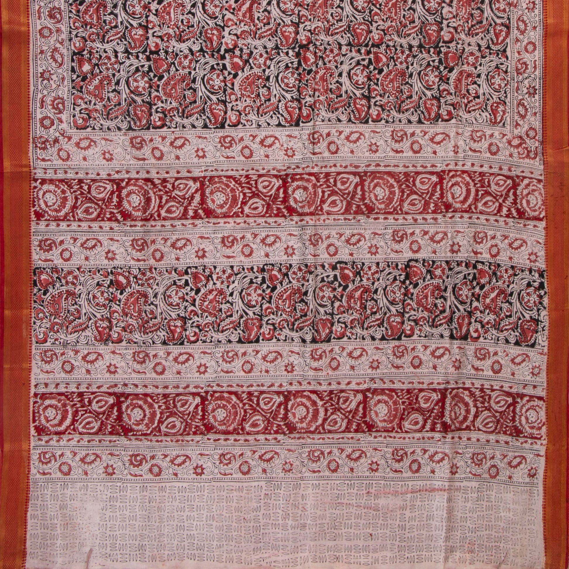 Black And Red Kalamkari Mangalgiri Silk Saree With Zari Border For Office Wear PV MG 110