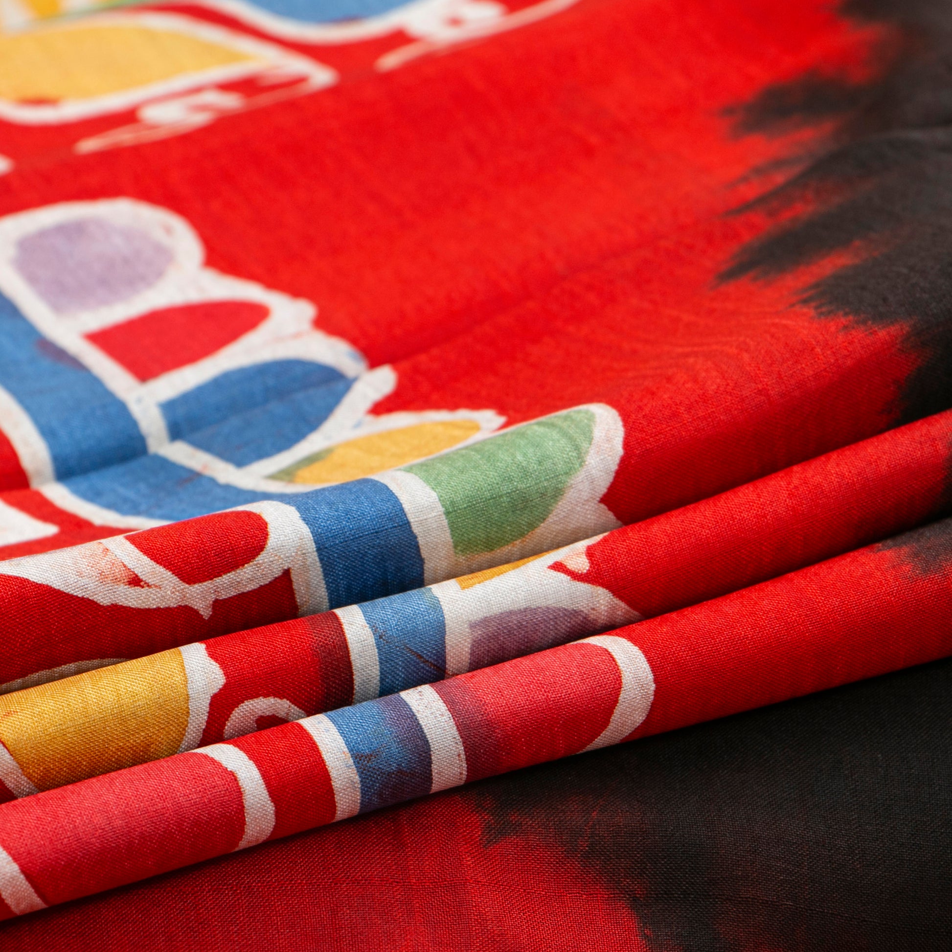 Black And Red Lightweight Batik Silk Saree For Office Wear PB 346