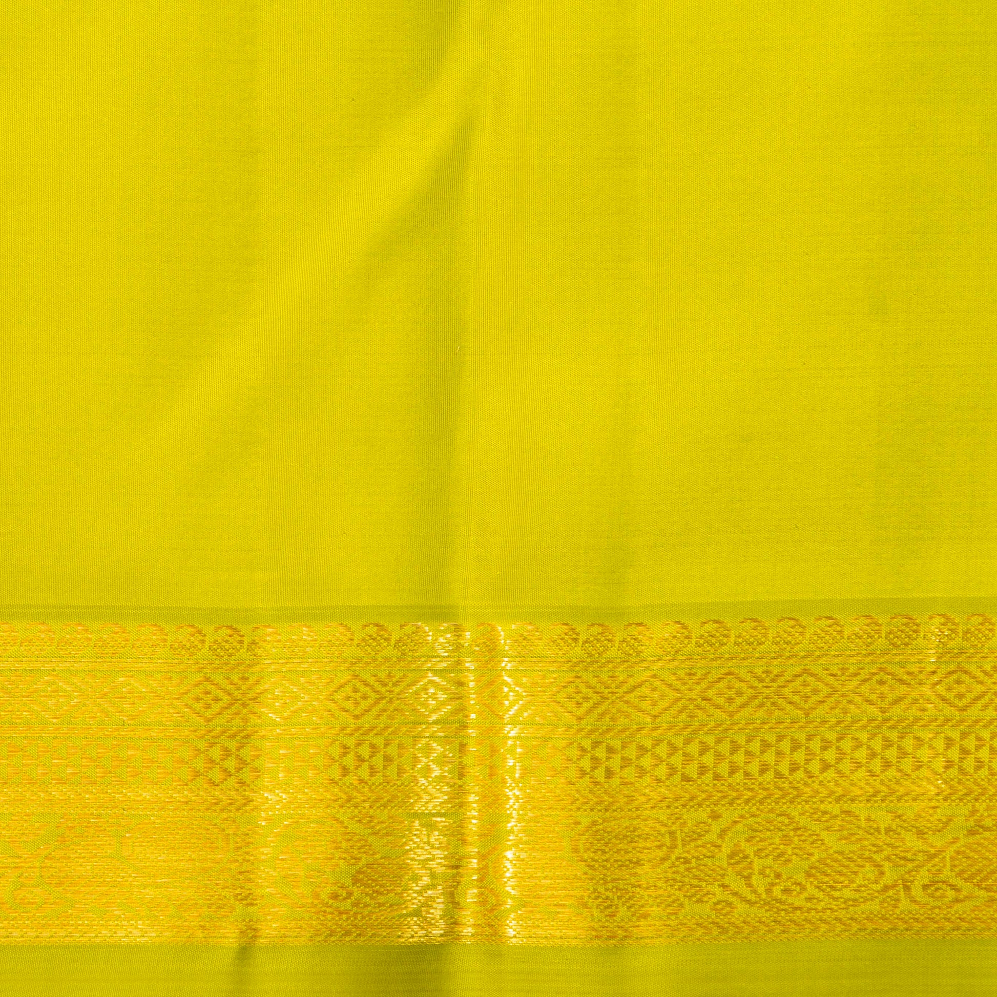 Yellow And Green Thirubuvanam Silk Saree With Yazhi Motifs For Festive W...