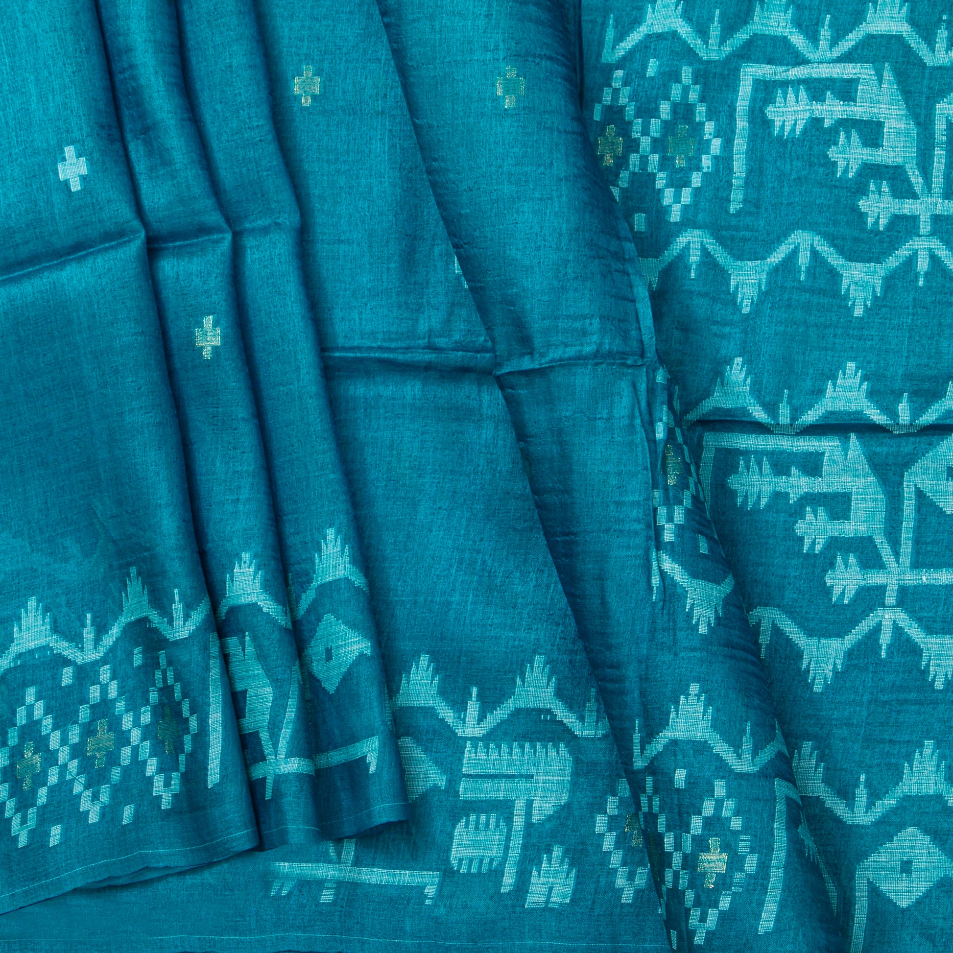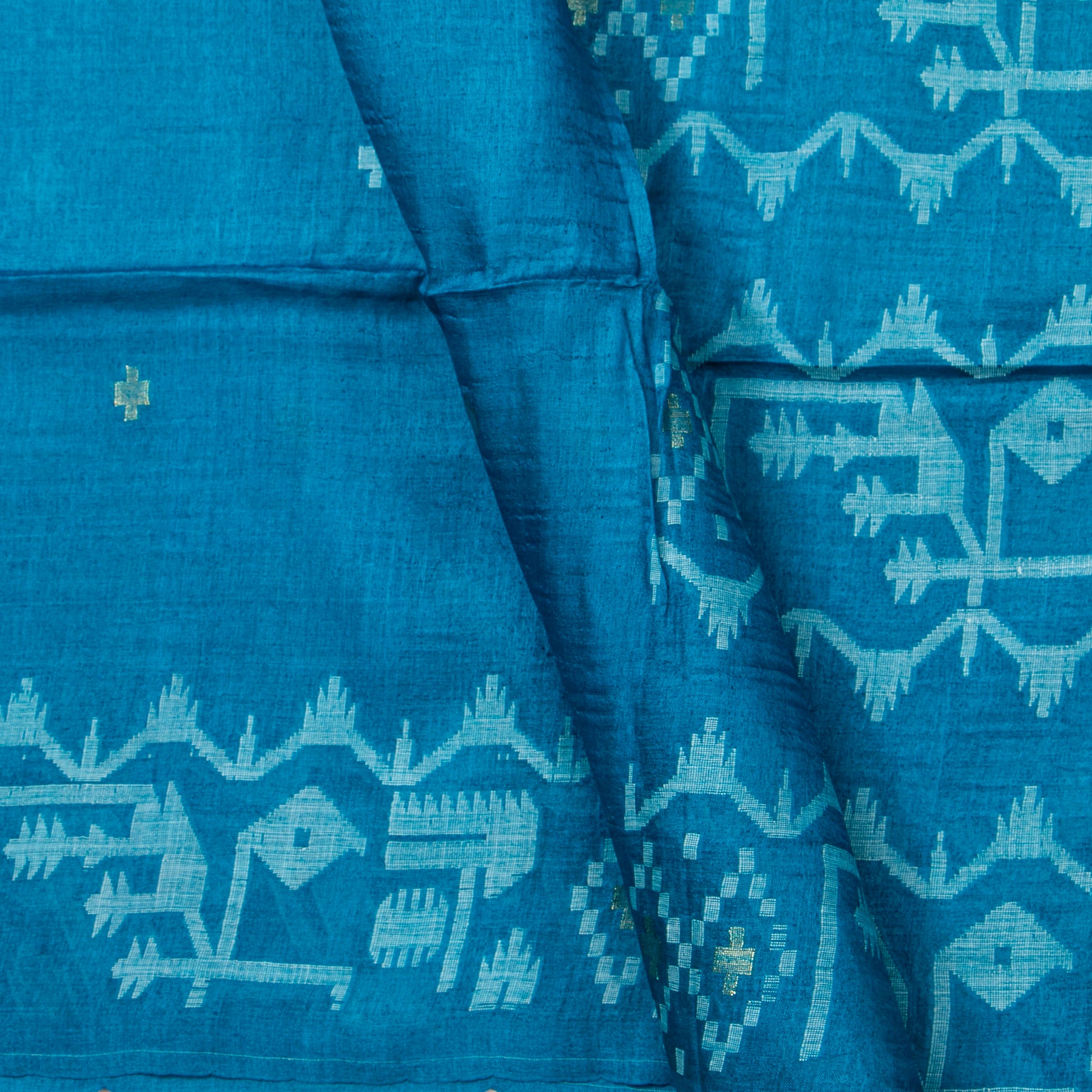 Blue Dhakai Jamdani Mulmul Silk Saree For Party Wear PV MJ 153