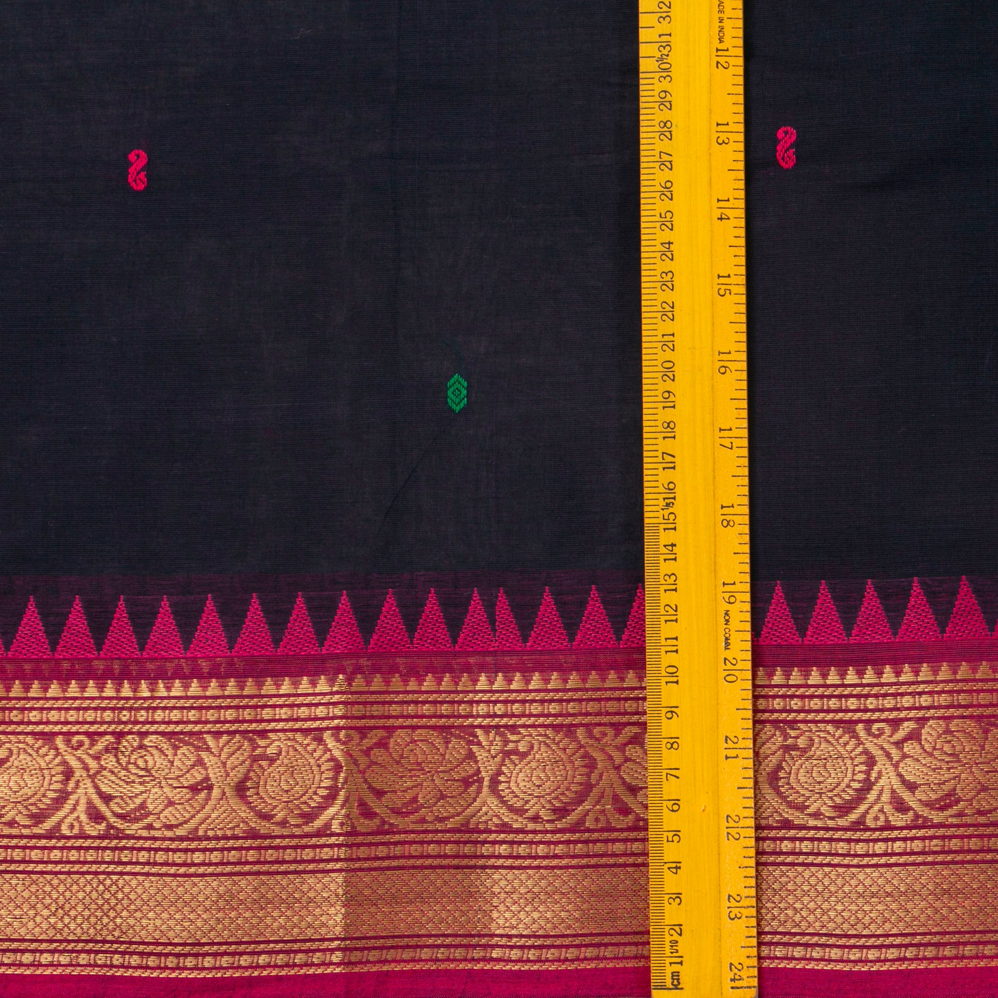 • All natural yarn handwoven sarees are sensitive to detergents and hence only professional dry cleaning is recommended to wash your saree