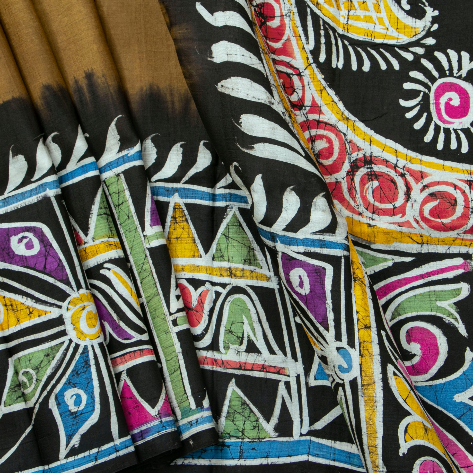 Brown And Black Lightweight Batik Silk Saree For Office Wear PB 338