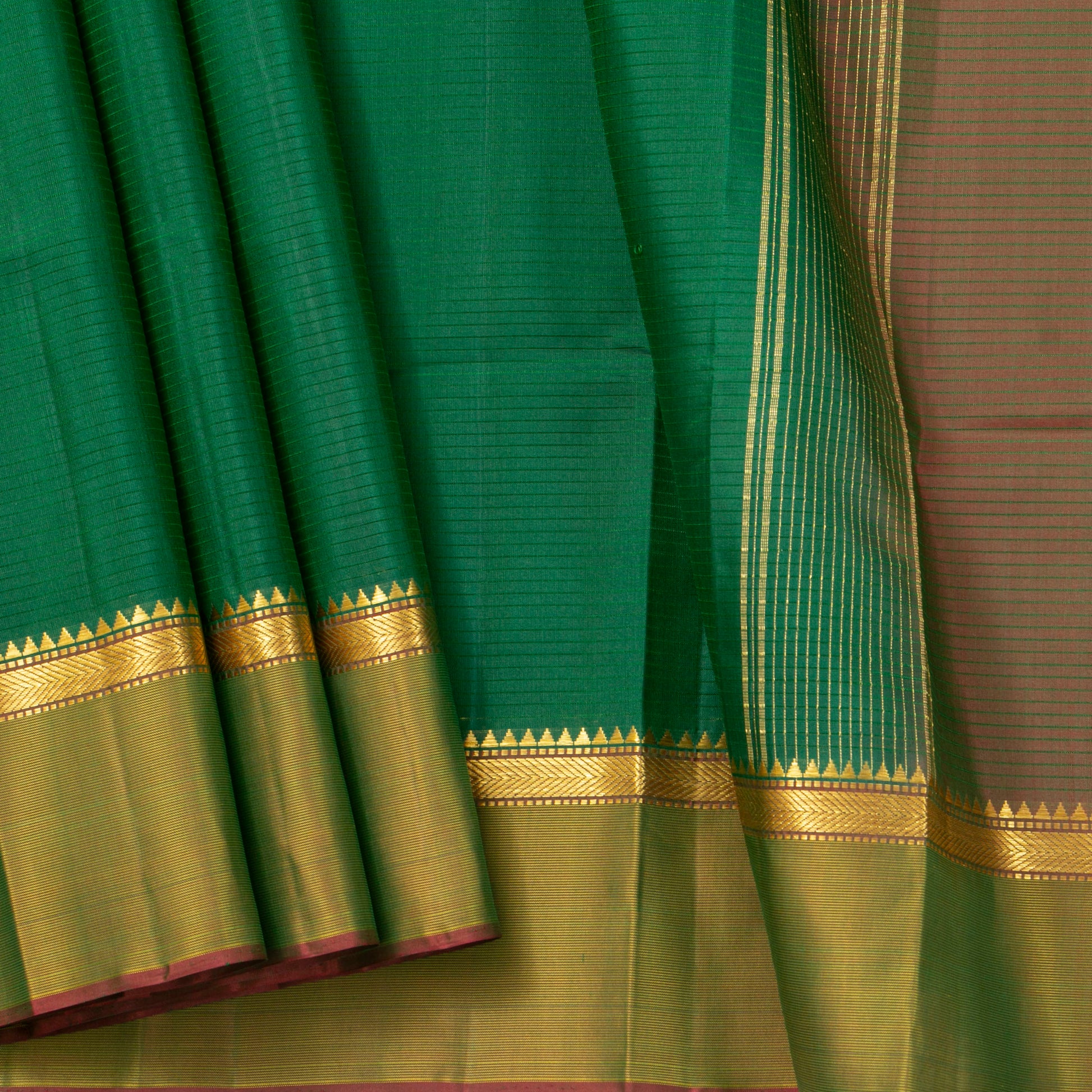 Green And Brown Kanchipuram Silk Saree For Festive Wear PV NYC 1886