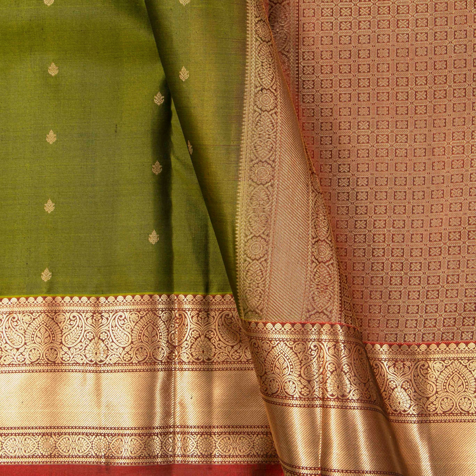 Green And Rust Kanchipuram Silk Saree For Festive Wear PV MEN 203