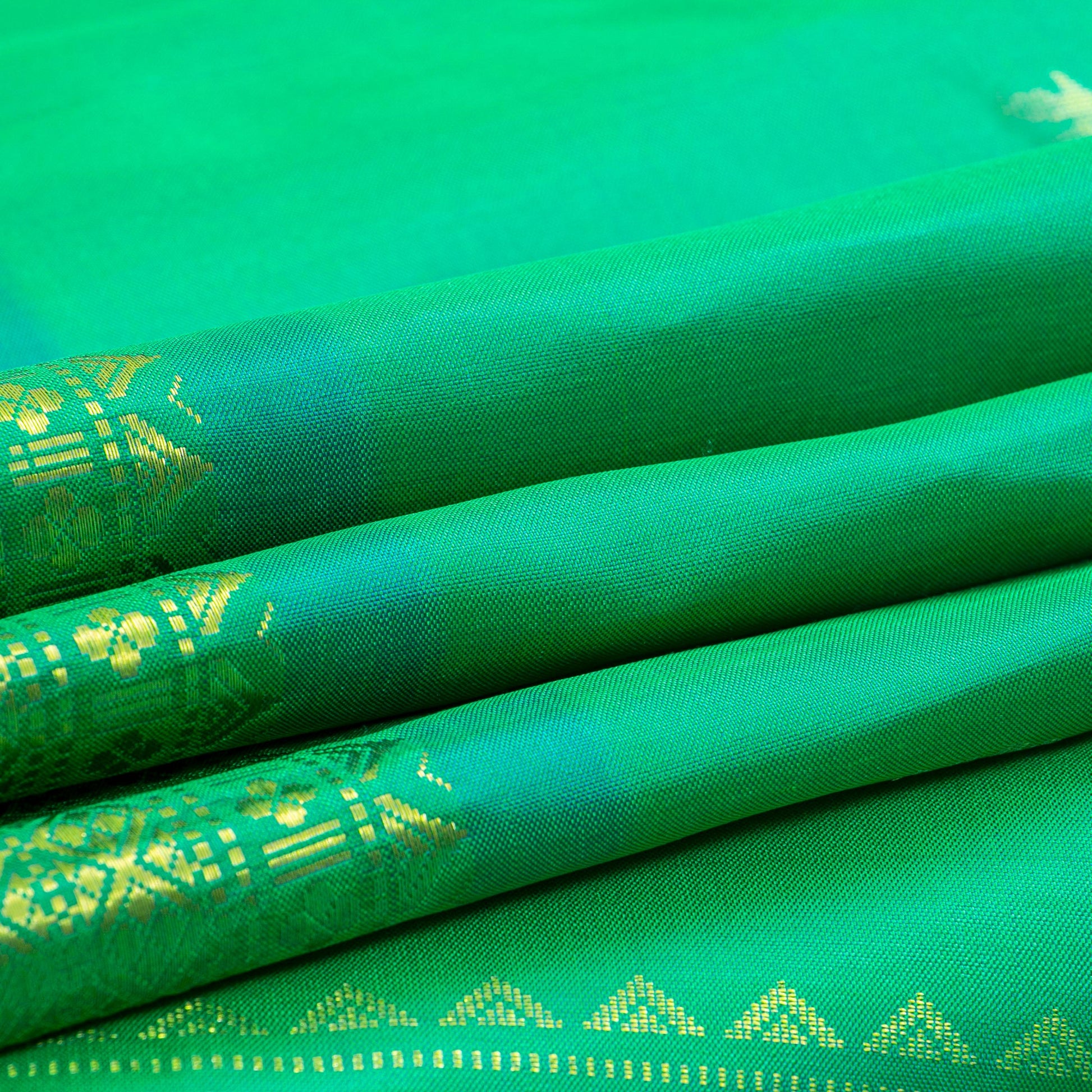Green And Turquoise Kanchipuram Silk Saree With Meenakari Zari Buttas For Festive Wear PV NYC 1780