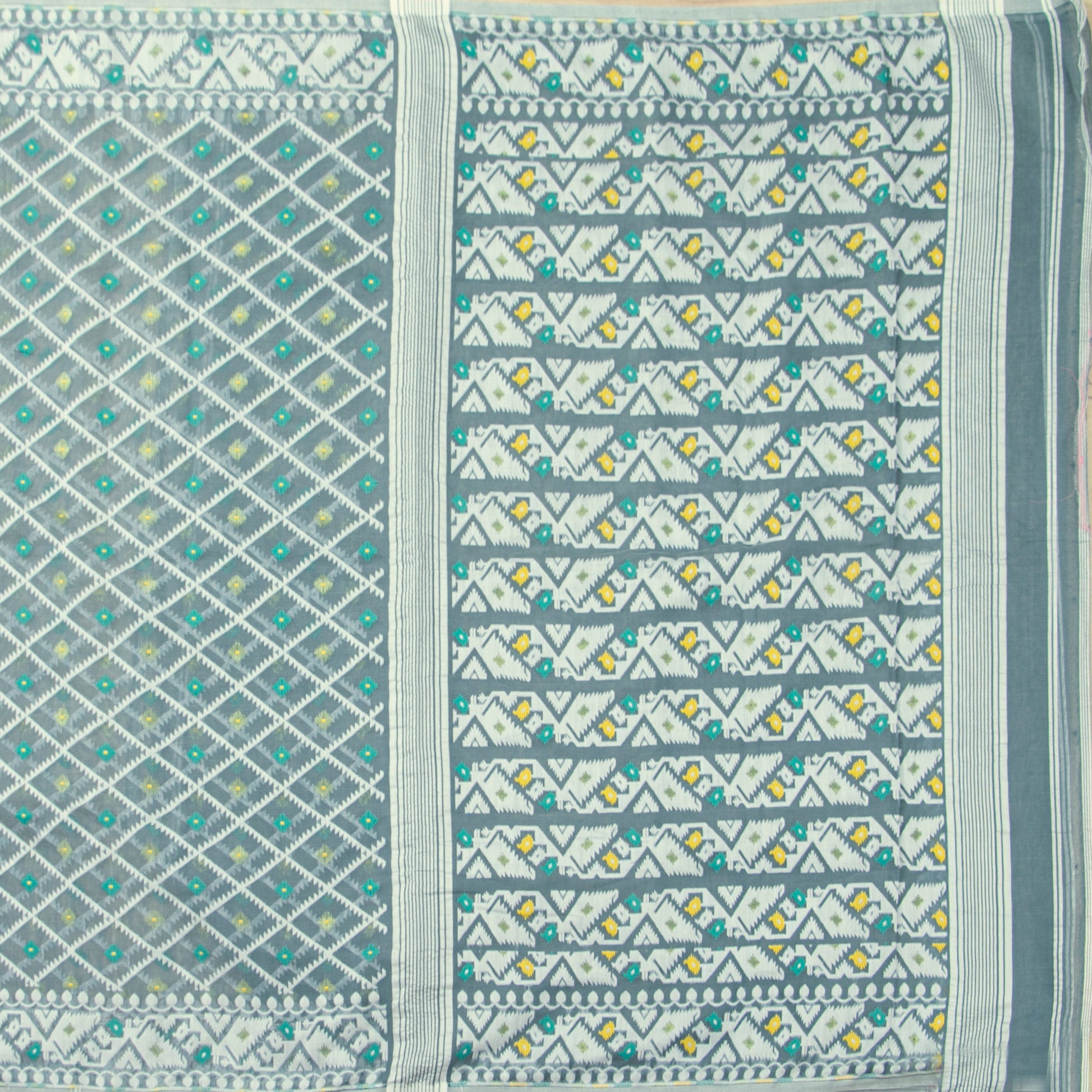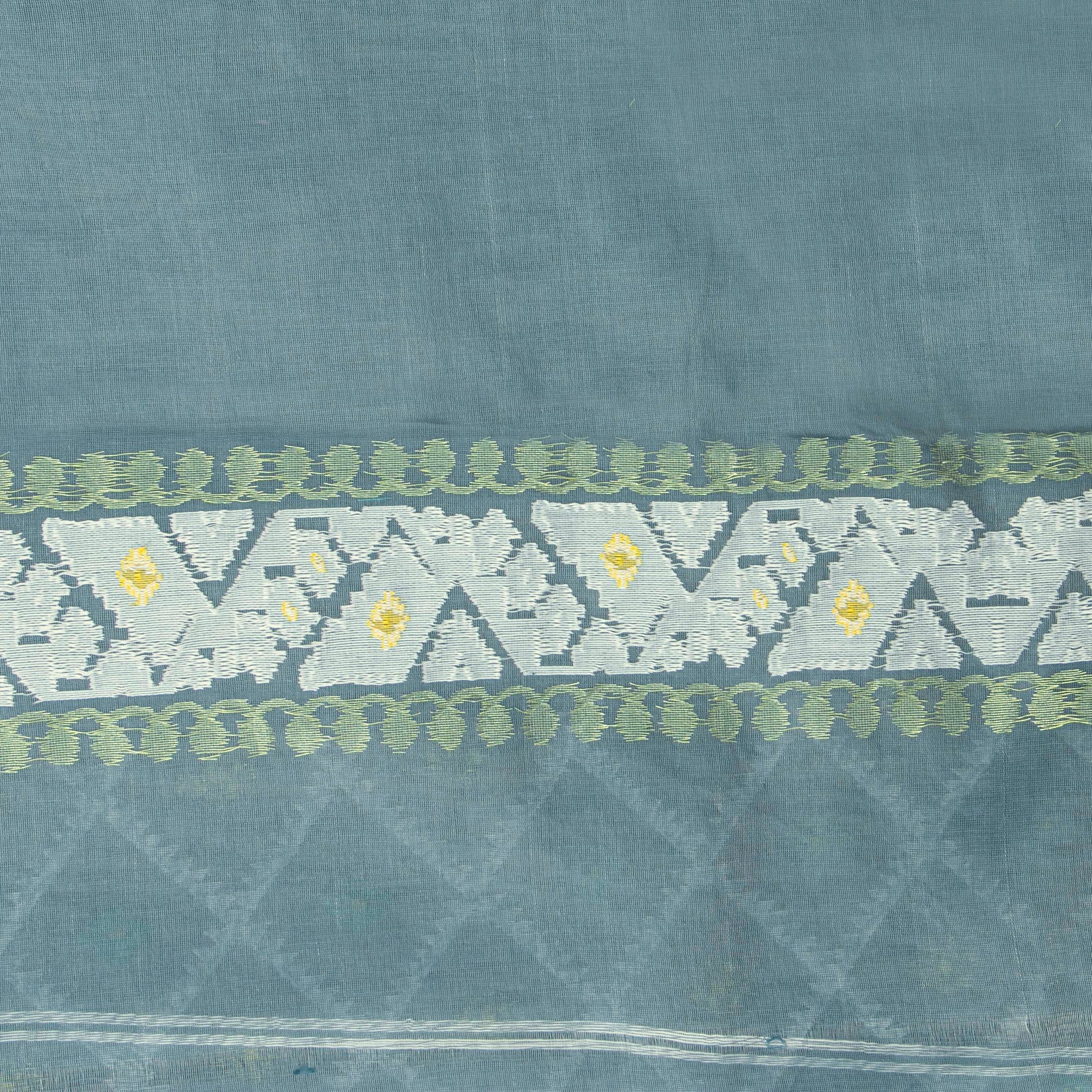 Off White And Blue Dhakai Jamdani Mulmul Silk Saree For Party Wear PV MJ...