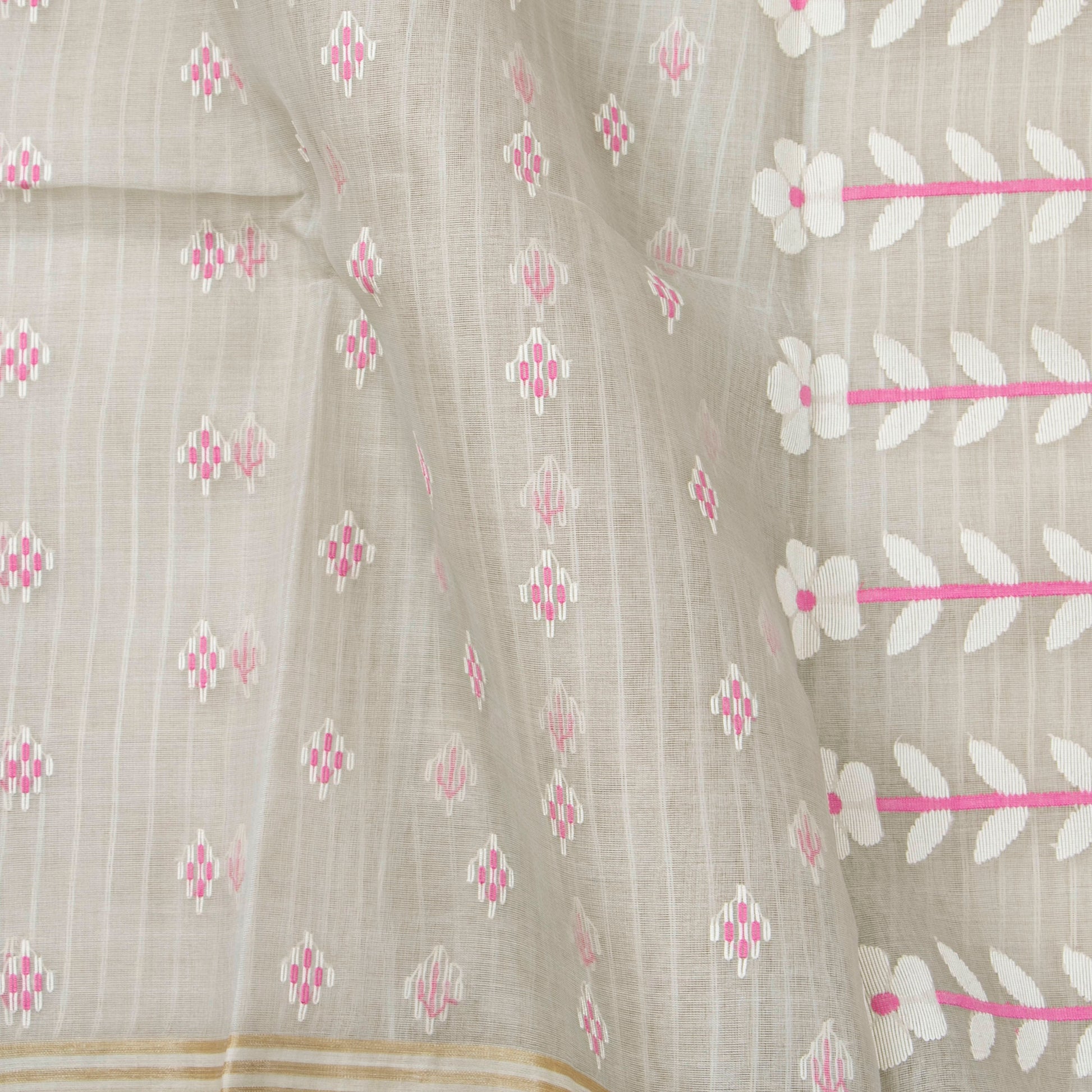 Grey dhakai jamdani muslin silk saree with floral work and attached blouse