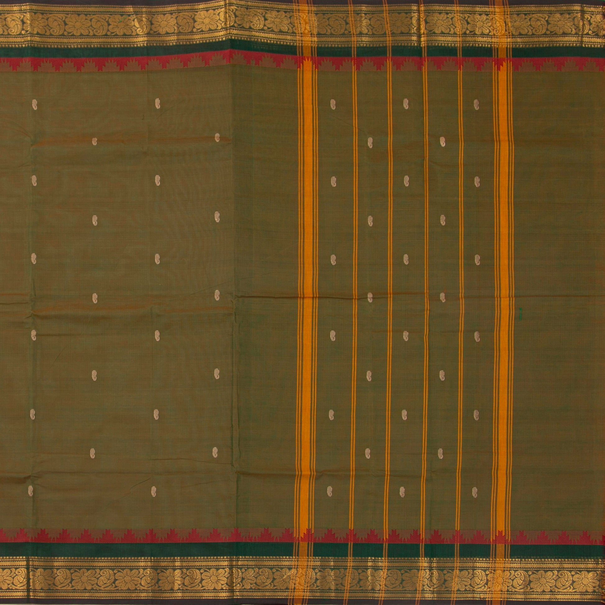 Green Kanchi Cotton Saree Ganga Jamuna Border For Festive Wear PV MM KC 551