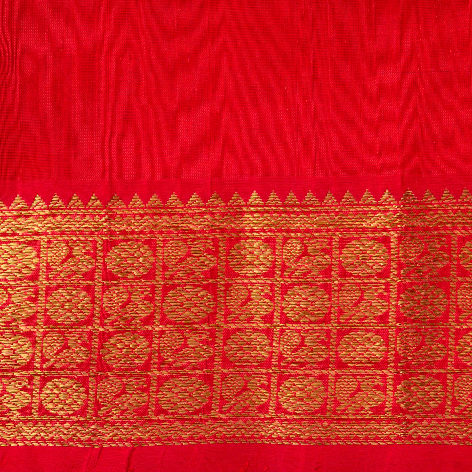 Orange And Green Kanchi Cotton Saree For Festive Wear PV MM KC 449