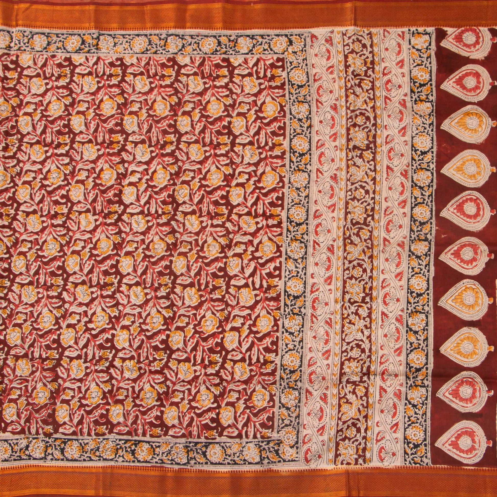 Maroon Kalamkari Mangalgiri Silk Saree For Office Wear PV MG 103