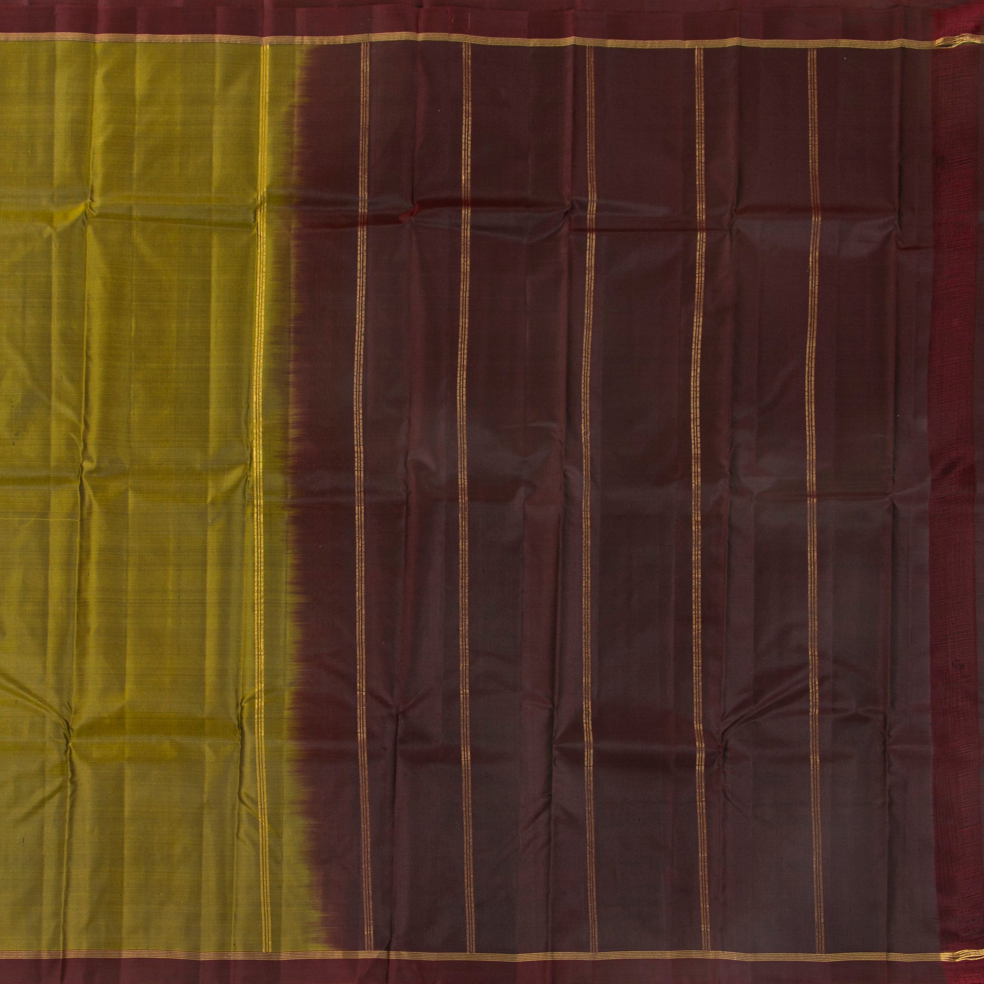 - We recommend that you air your Kanjivaram, once every 3-4 months by opening the sari, spread it out over a cool surface ( like your bed) for about 30 minutes and refold it back to storage. This helps to avoid colour fade along the folds and preserves the yarn along the creases.