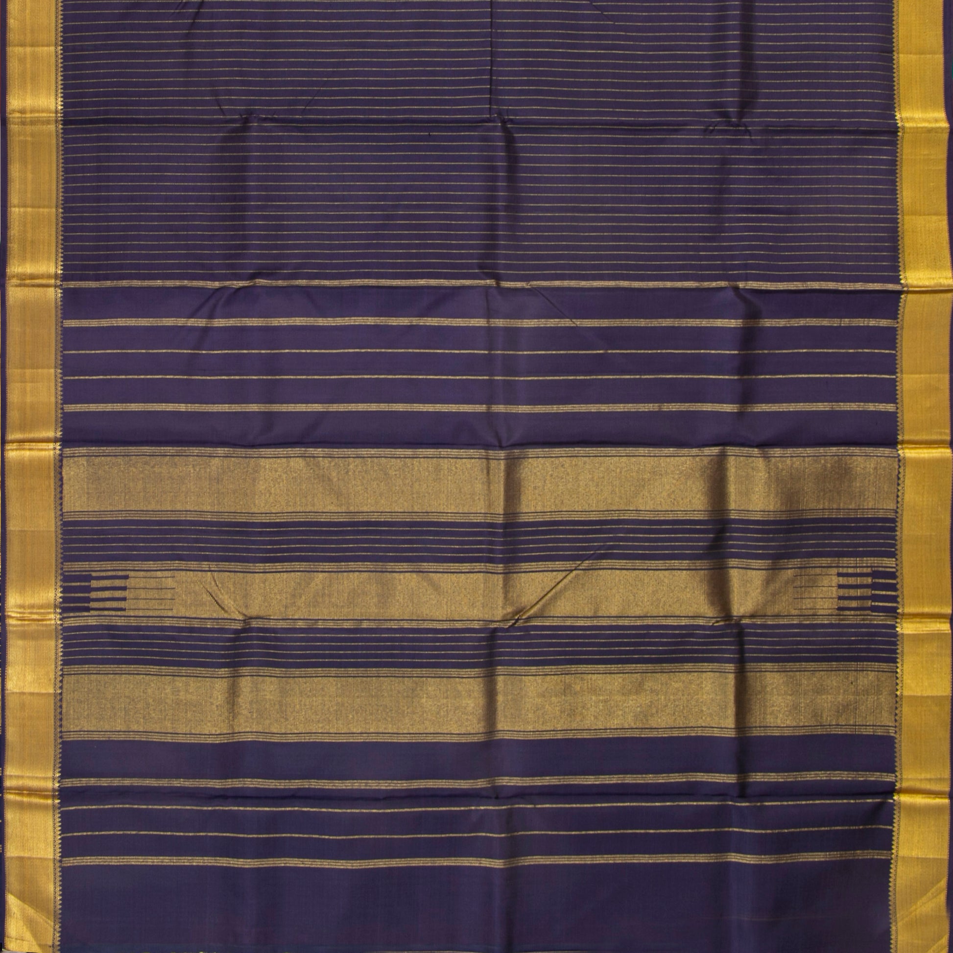 Navy Blue Kanchipuram SIlk Saree With Zari Stripes For Festive Wear PV NYC 1928