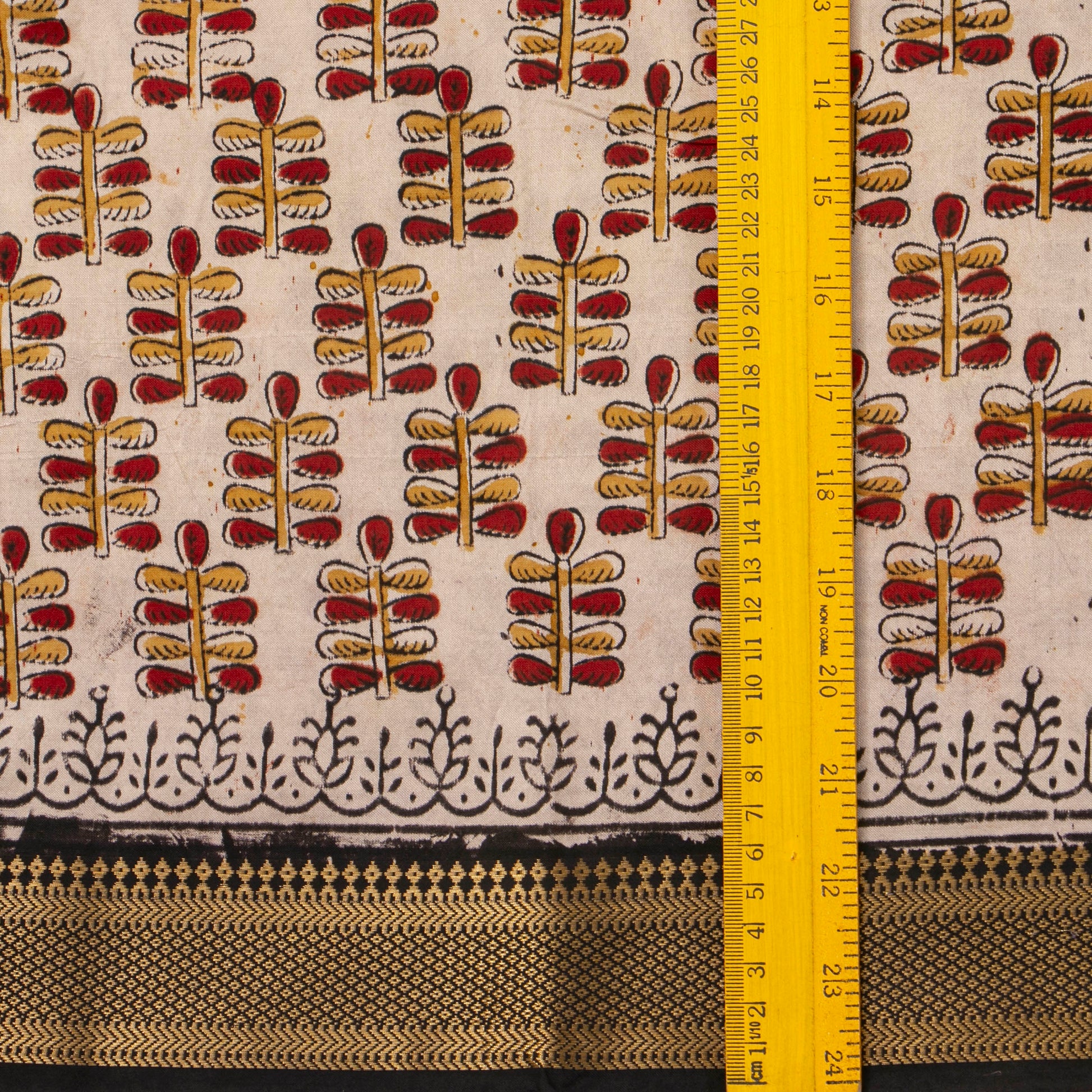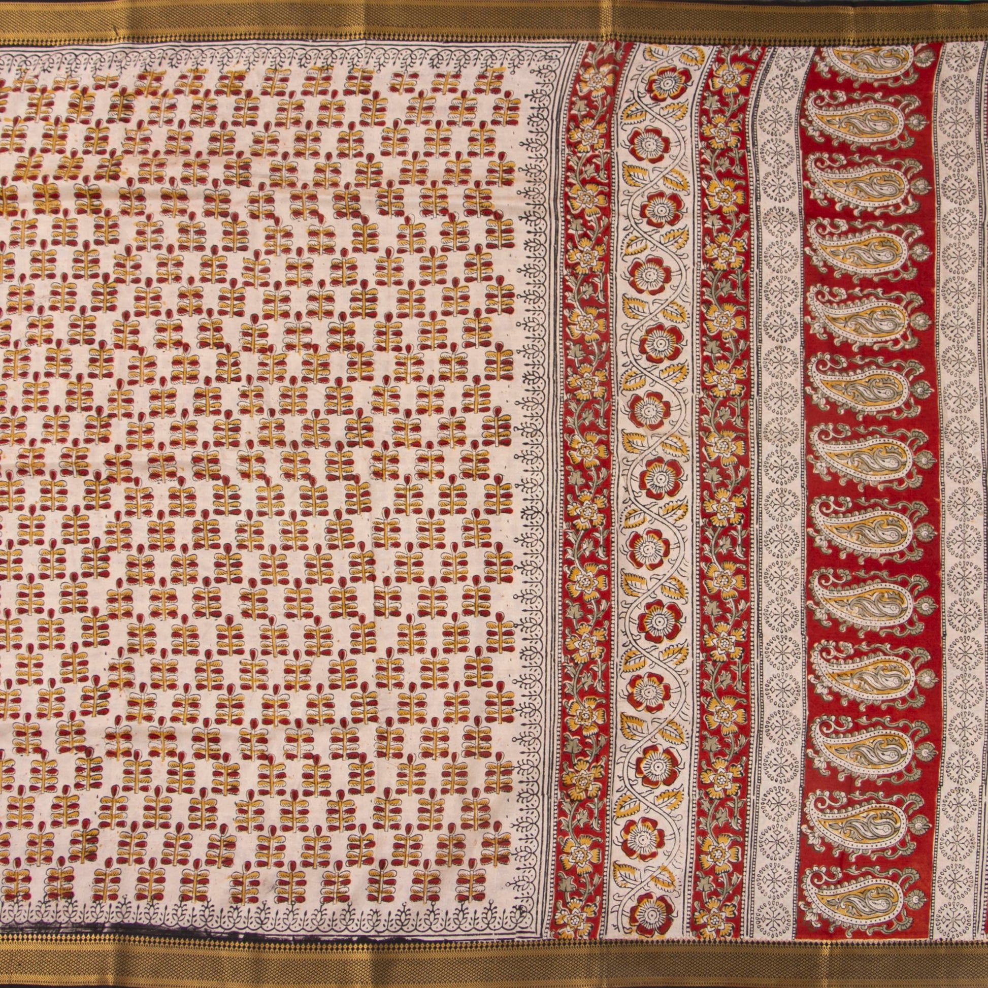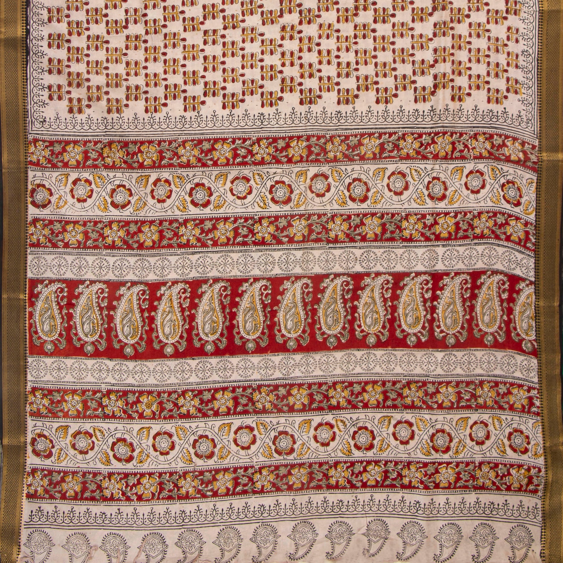 Black And Red Kalamkari Mangalgiri Silk Saree With Zari Border For Offic...