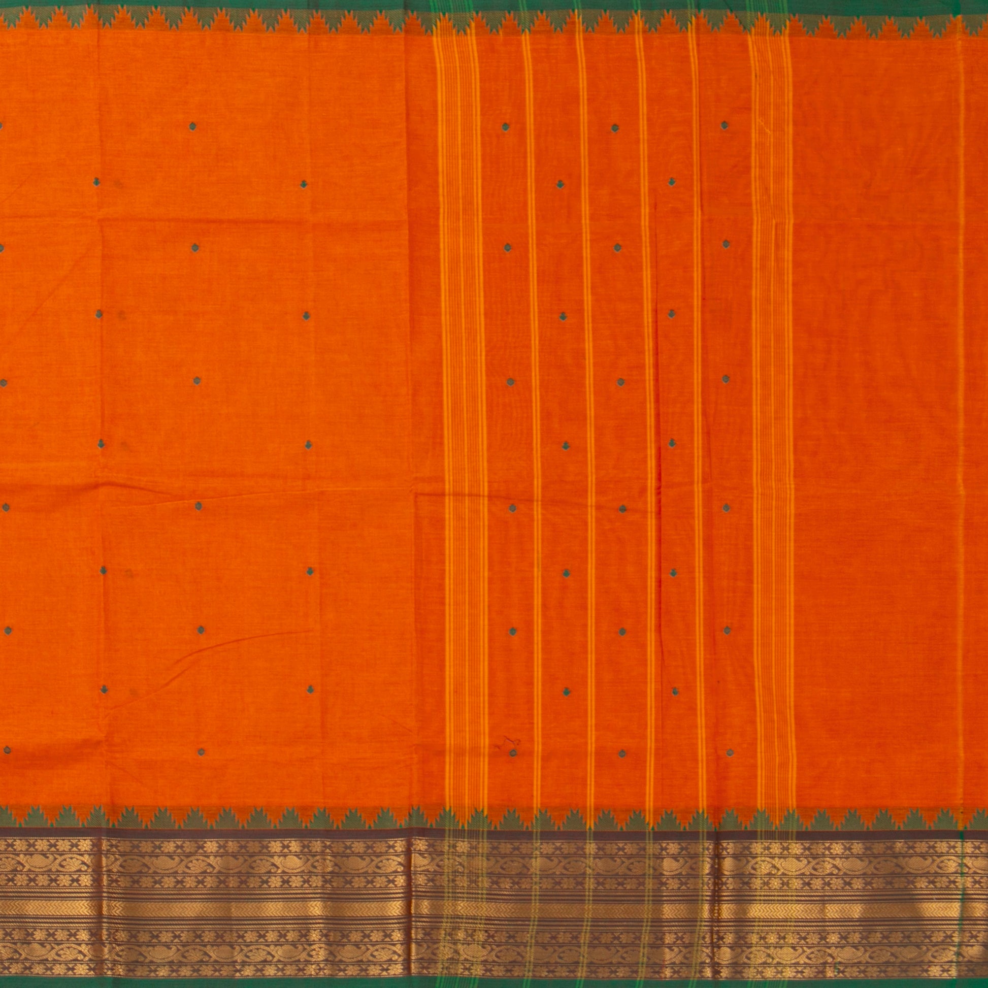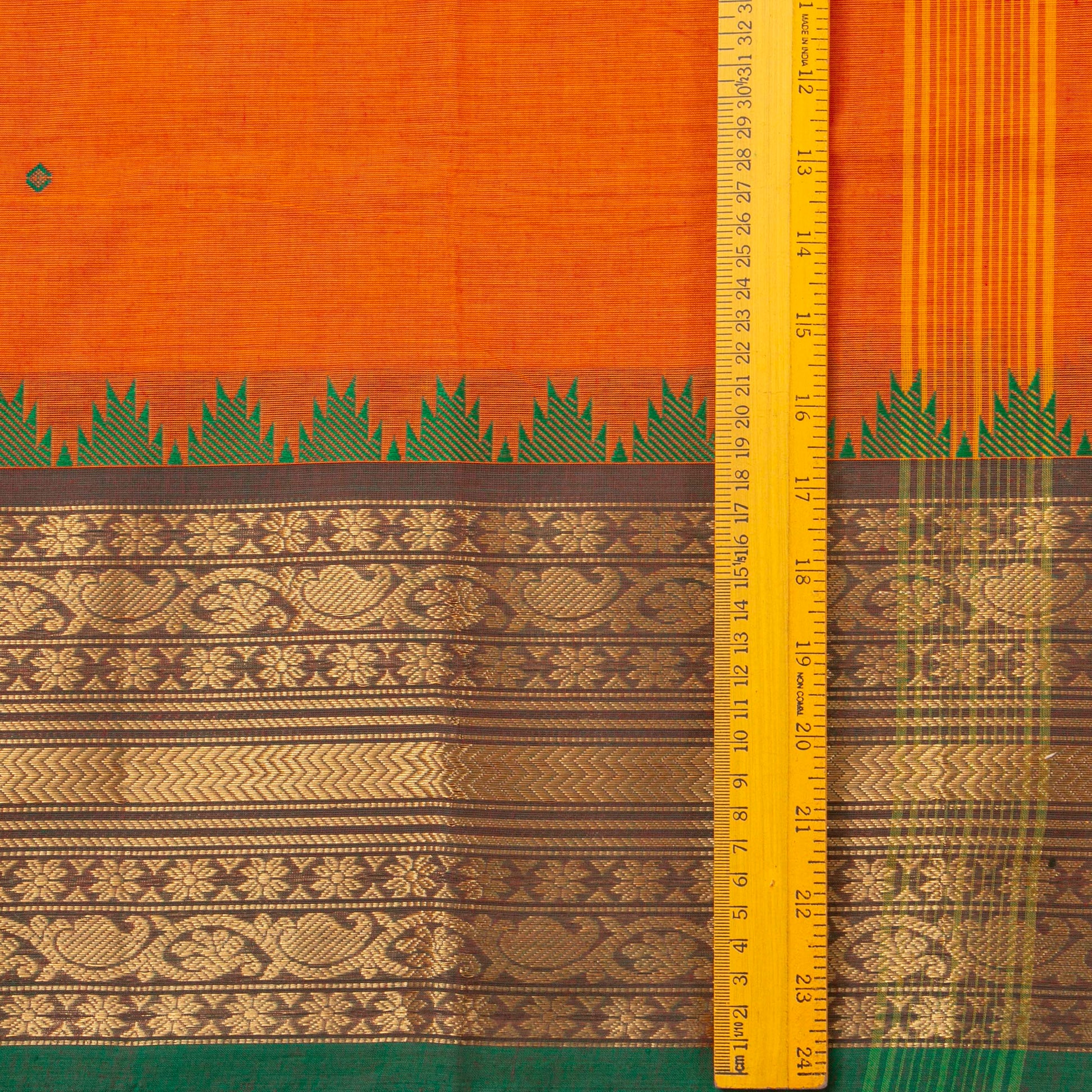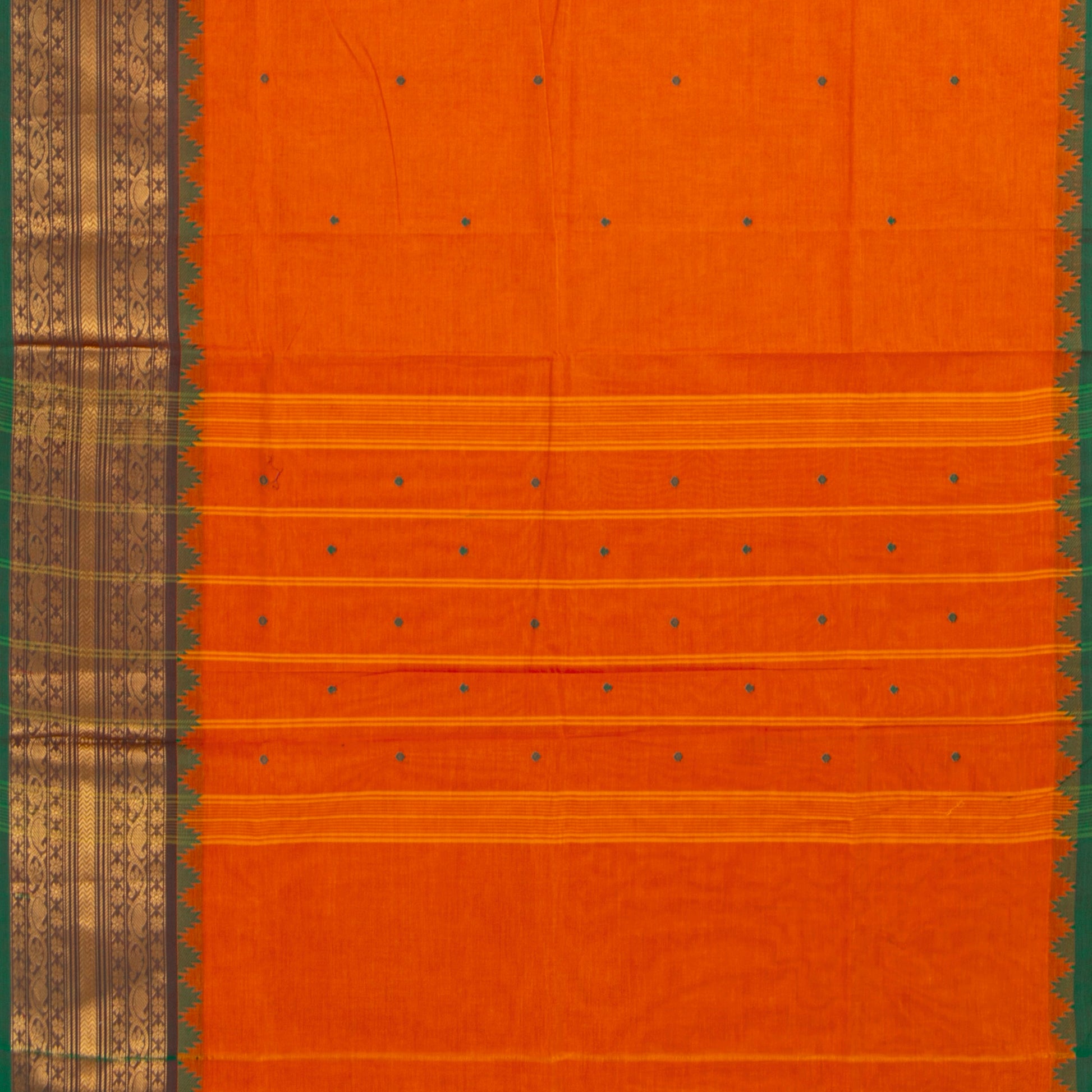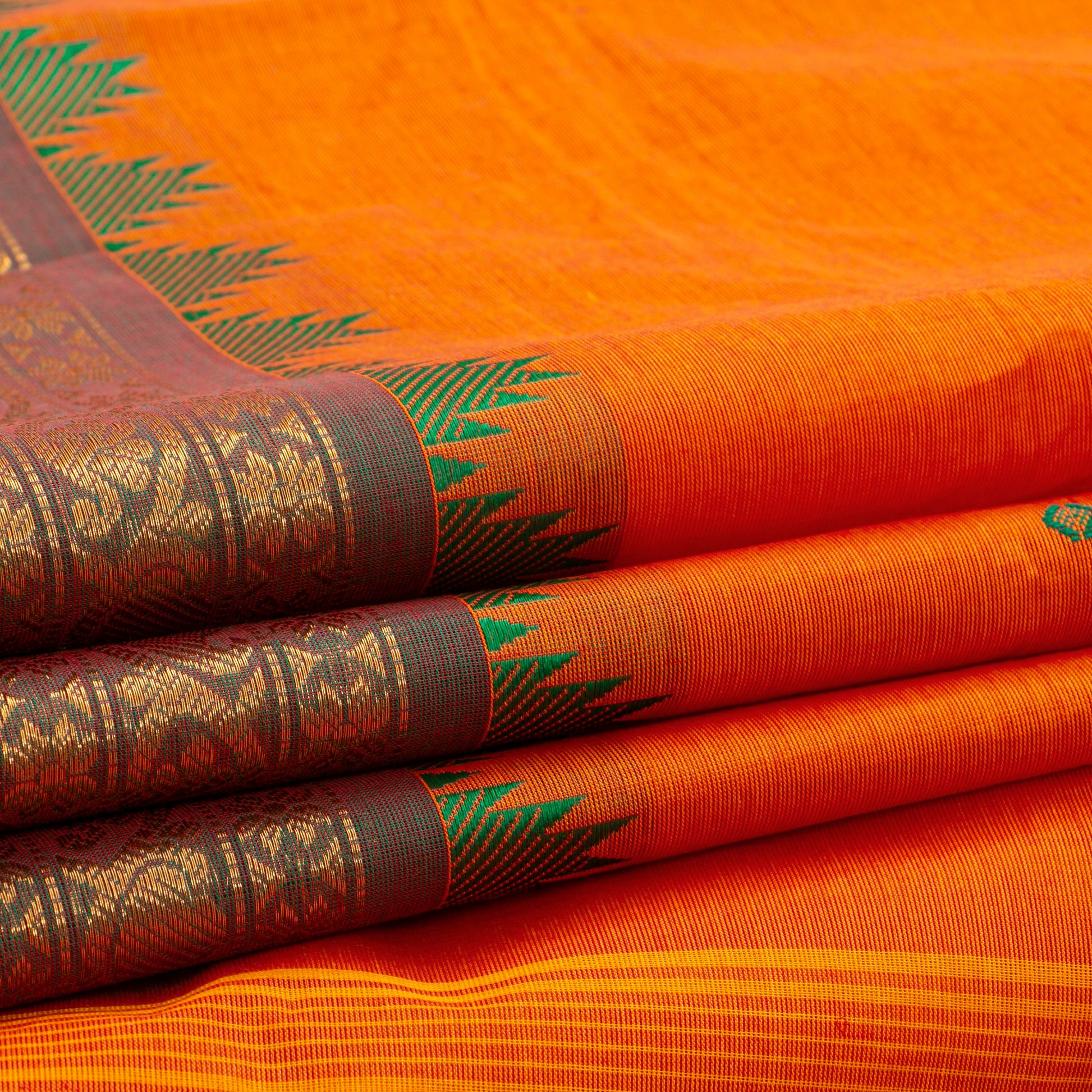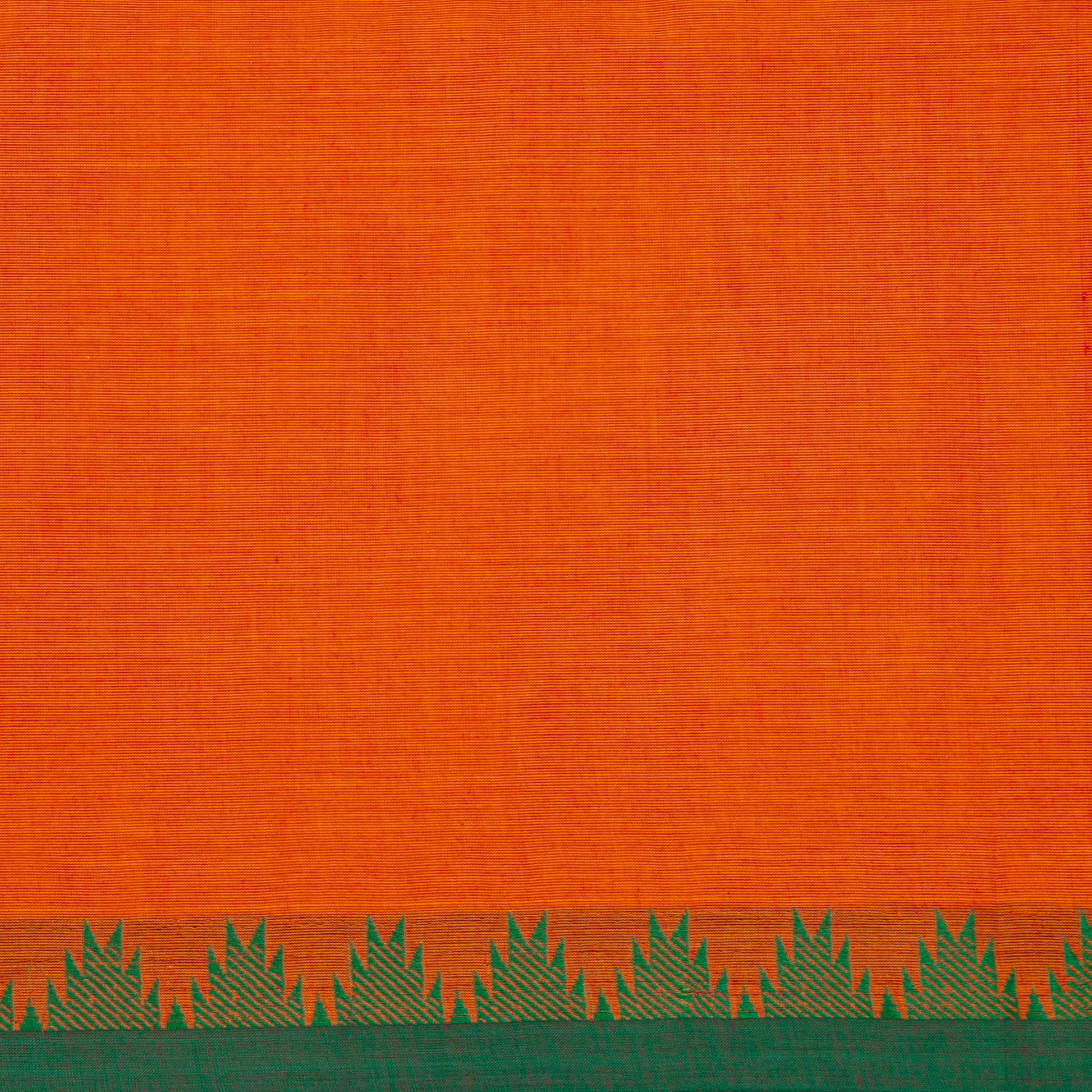 Orange And Green Kanchi Cotton Saree For Festive Wear PV MM KC 522