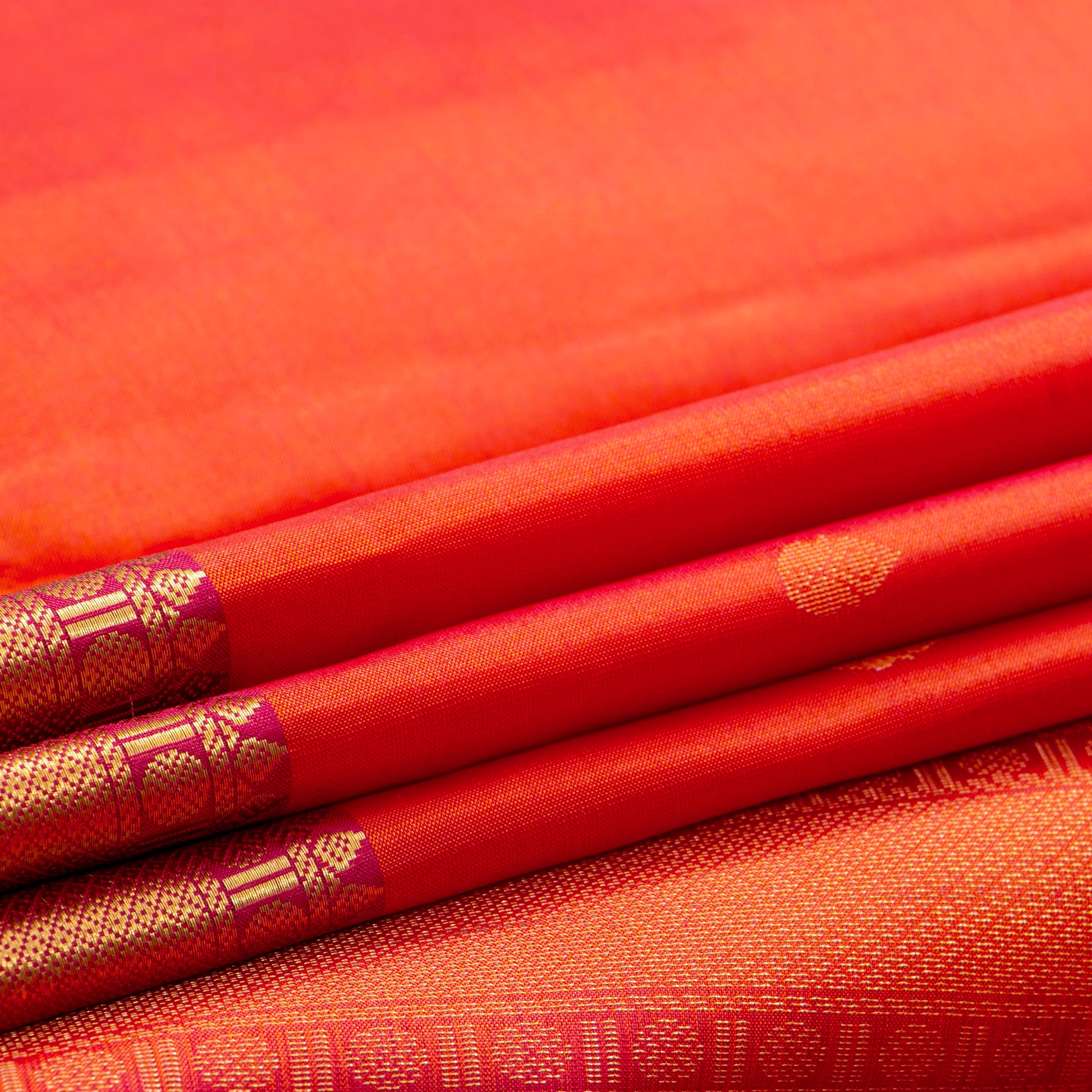 Orange And Red Kanchipuram Silk Saree Light Weight For Office Wear PV ME...
