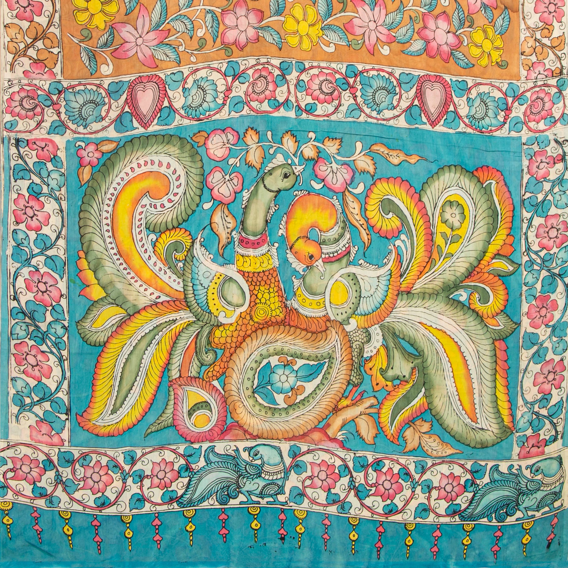 Orange Handpainted Kalamakari Bangalore Silk Saree For Office Wear KBS VSR 112