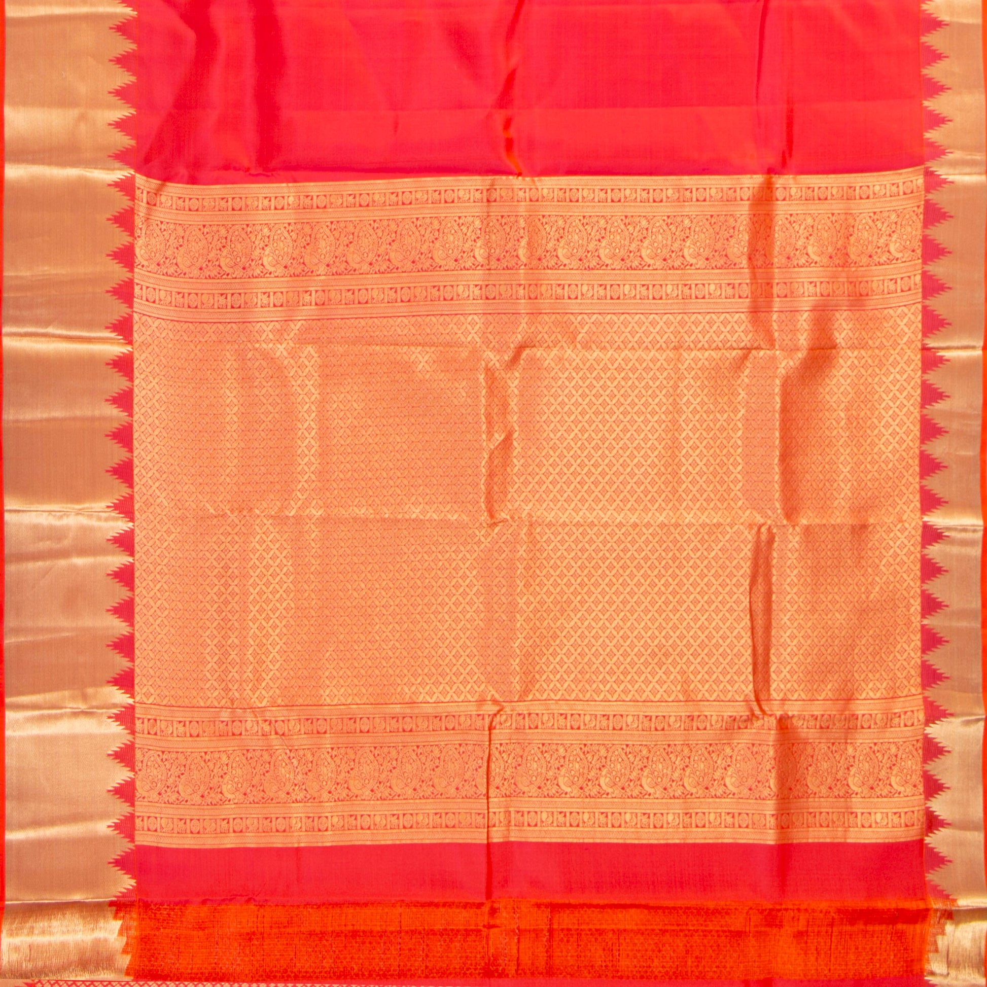 Orange Kanchipuram Silk Saree Temple Border For Festive Wear PV MEN 155