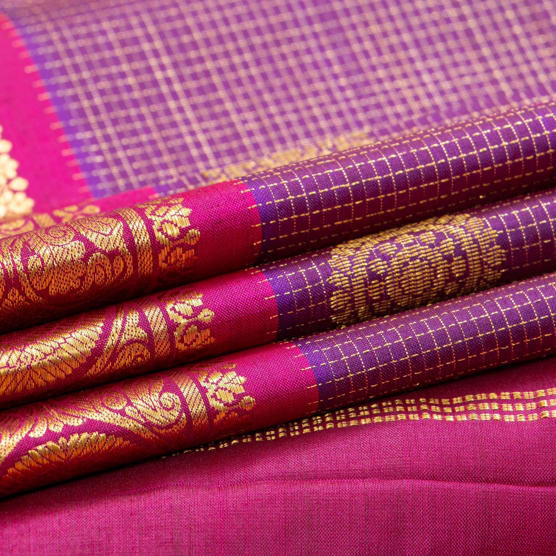 Purple And Pink Kanchipuram Silk Saree With Vaira Oosi Checks For Wedding Wear PV 2059