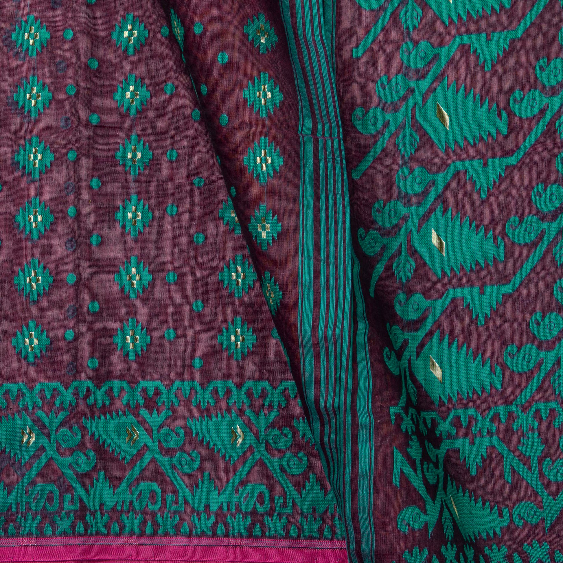 Purple Dhakai Jamdani Mulmul Silk Saree For Party Wear PV MJ 139