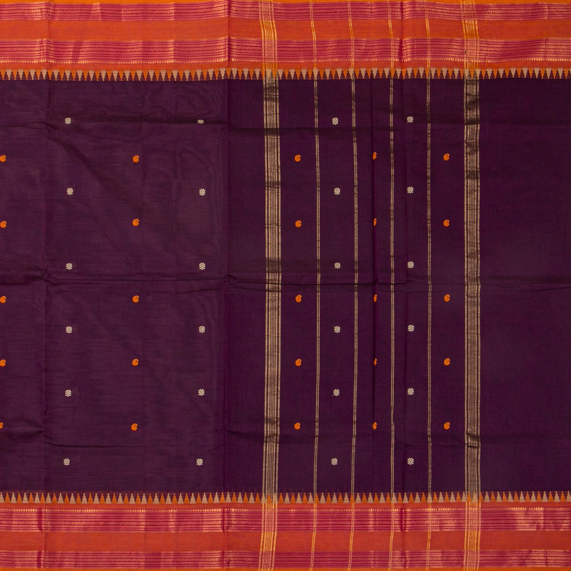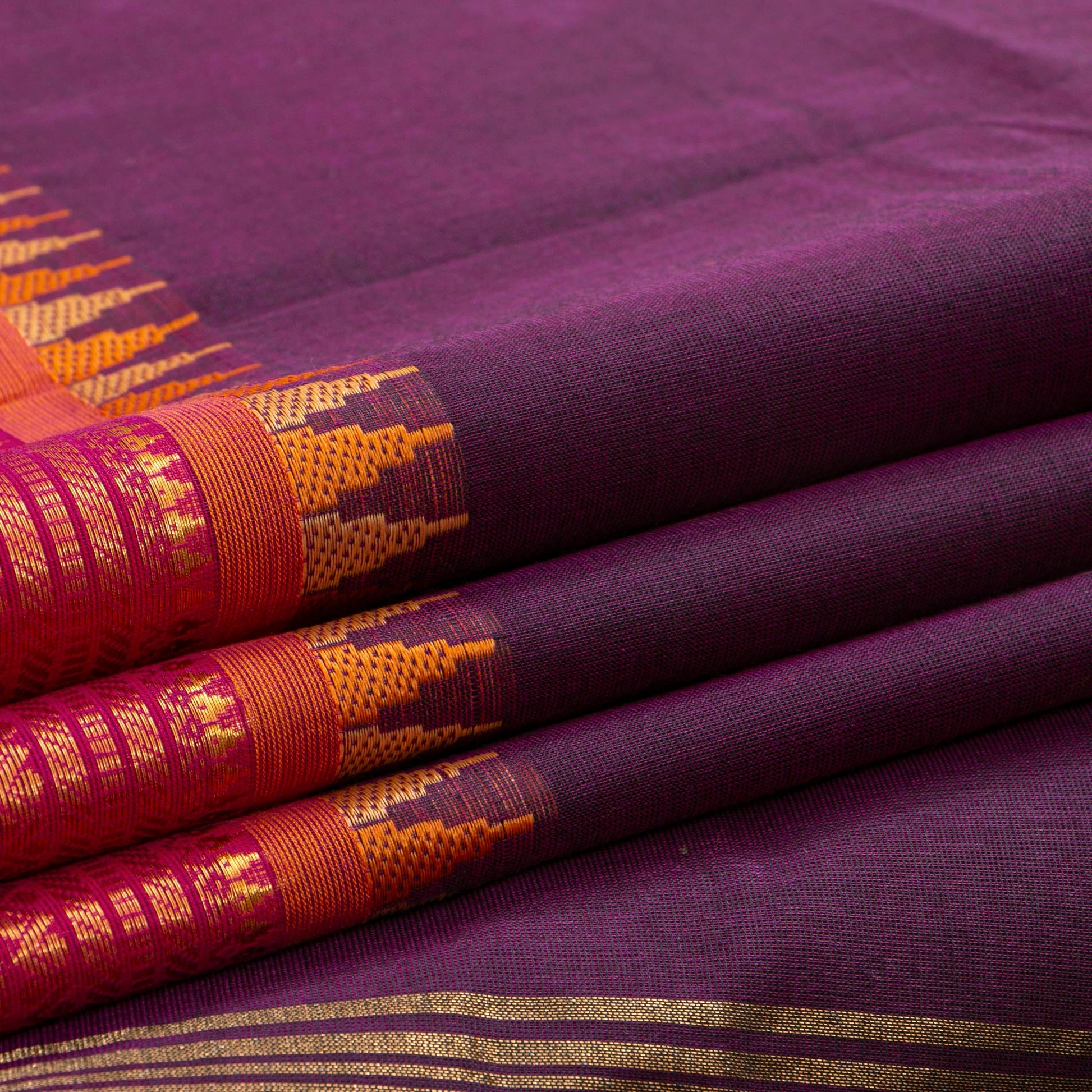 Wine And Orange Kanchi Cotton Saree For Festive Wear PV MM KC 565
