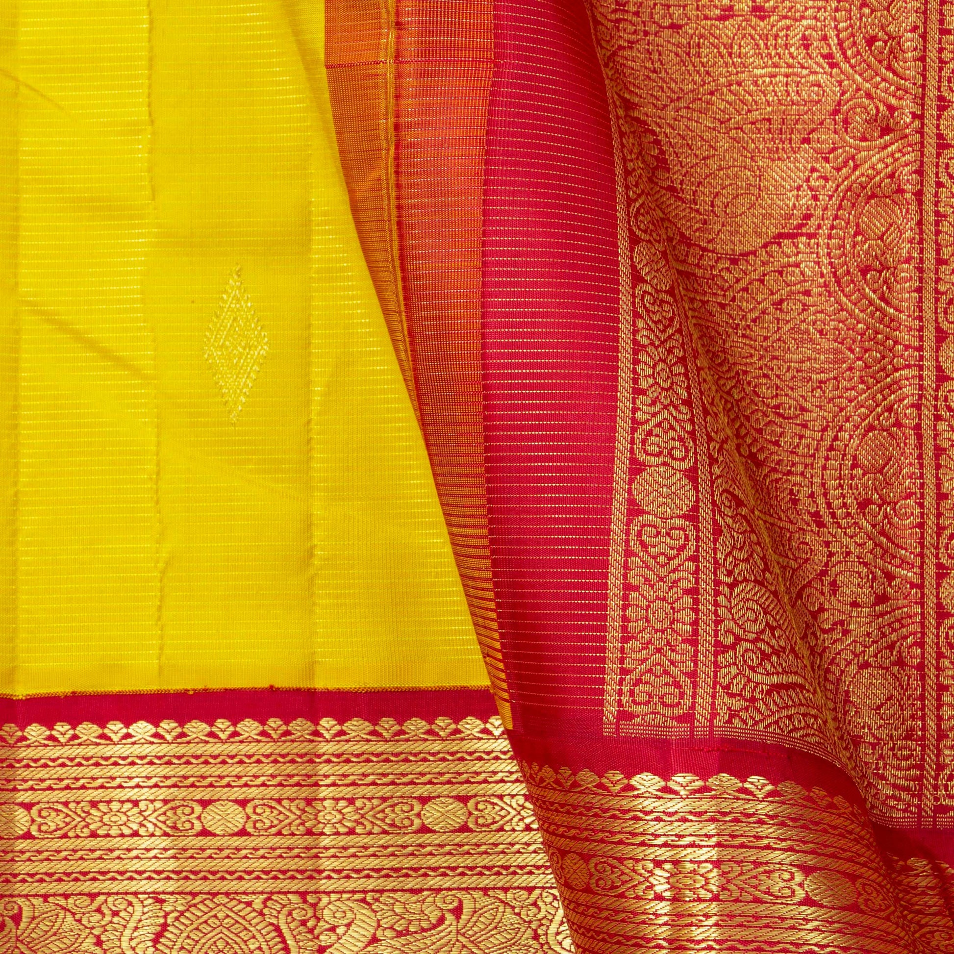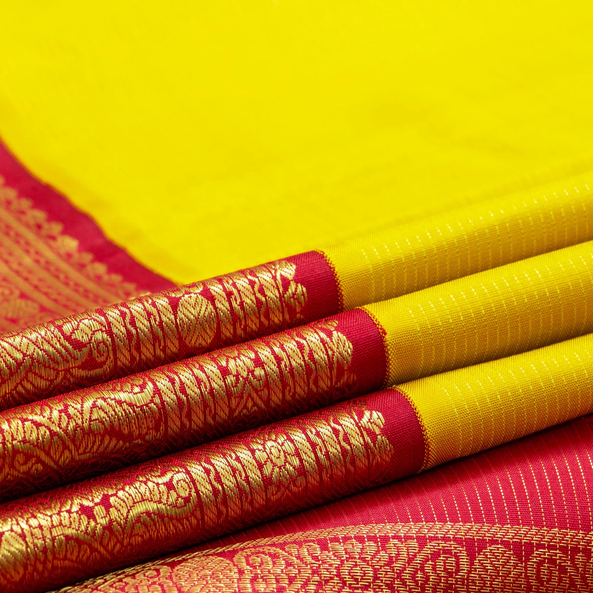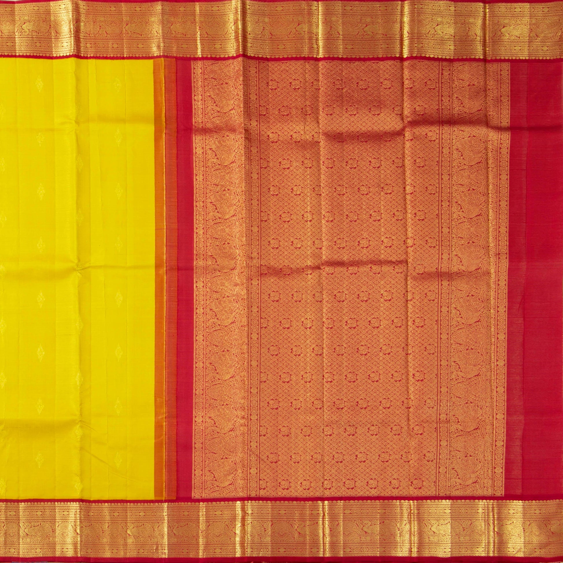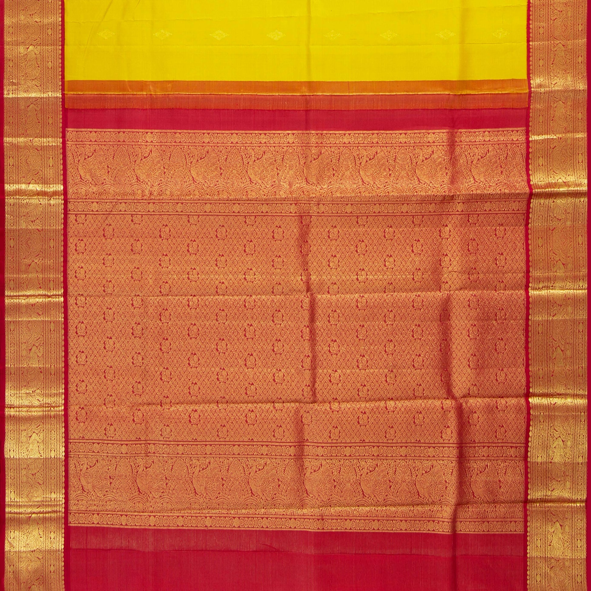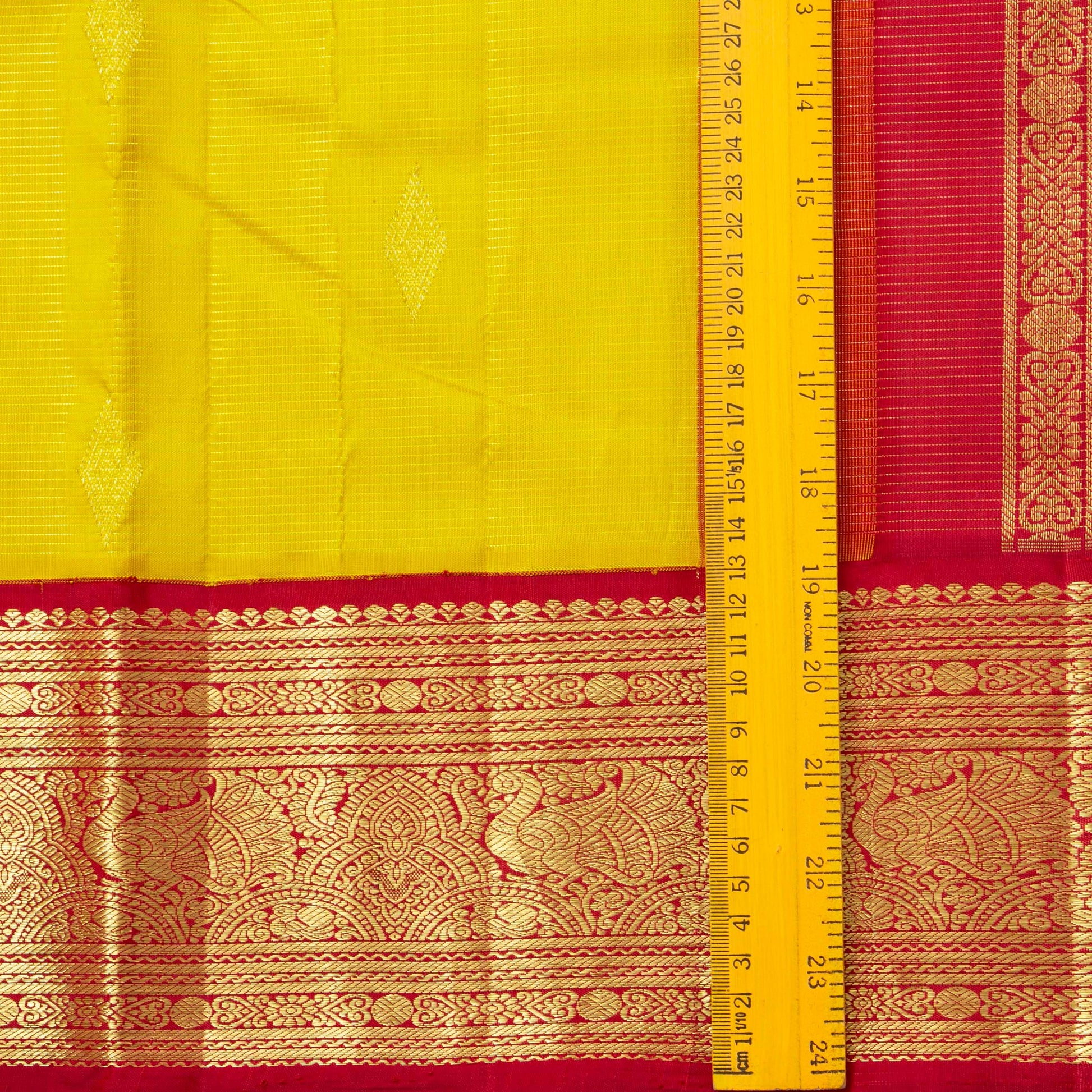 Yellow And Red Kanchipuram Silk Saree Vaira Oosi For Wedding Wear PV NYC 1581